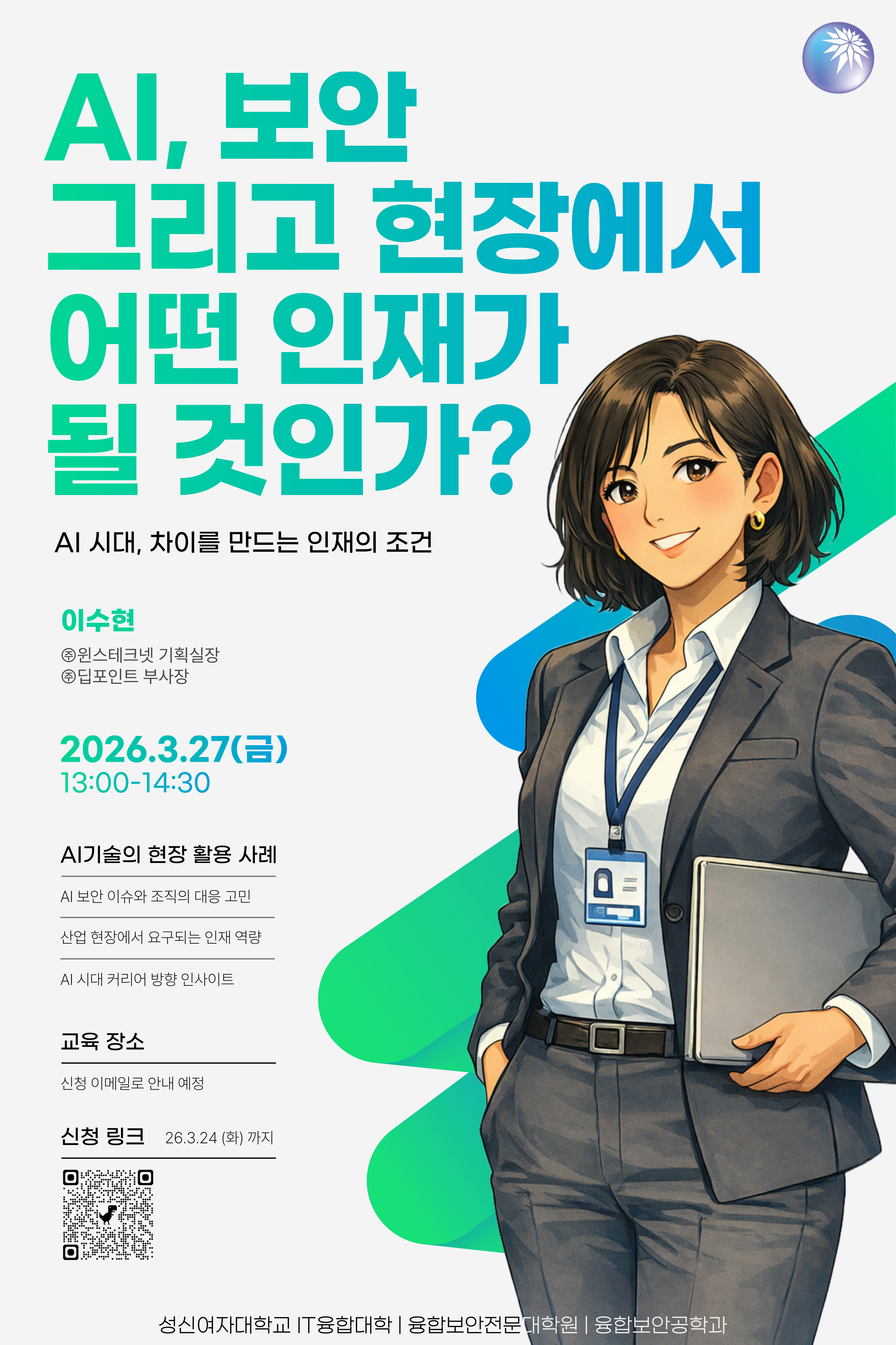 성신여자대학교 IT융합대학 / 융합보안전문대학원 / 융합보안공학과 학생 여러분께,