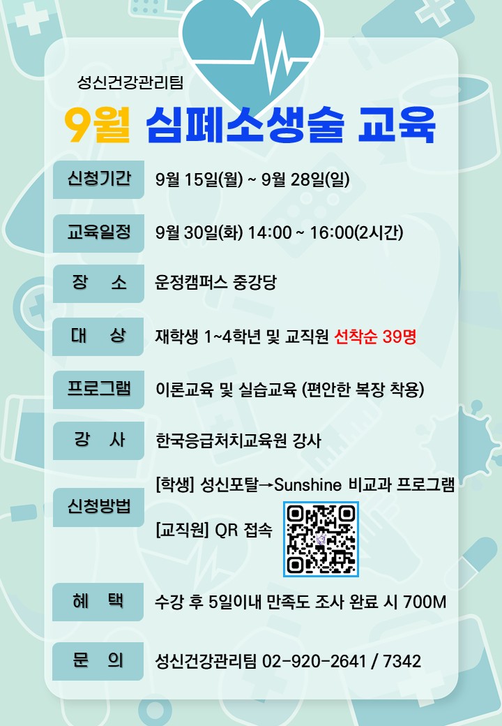 [성신건강관리팀] 9월 건강교육 안내-심폐소생술 교육(재공지)