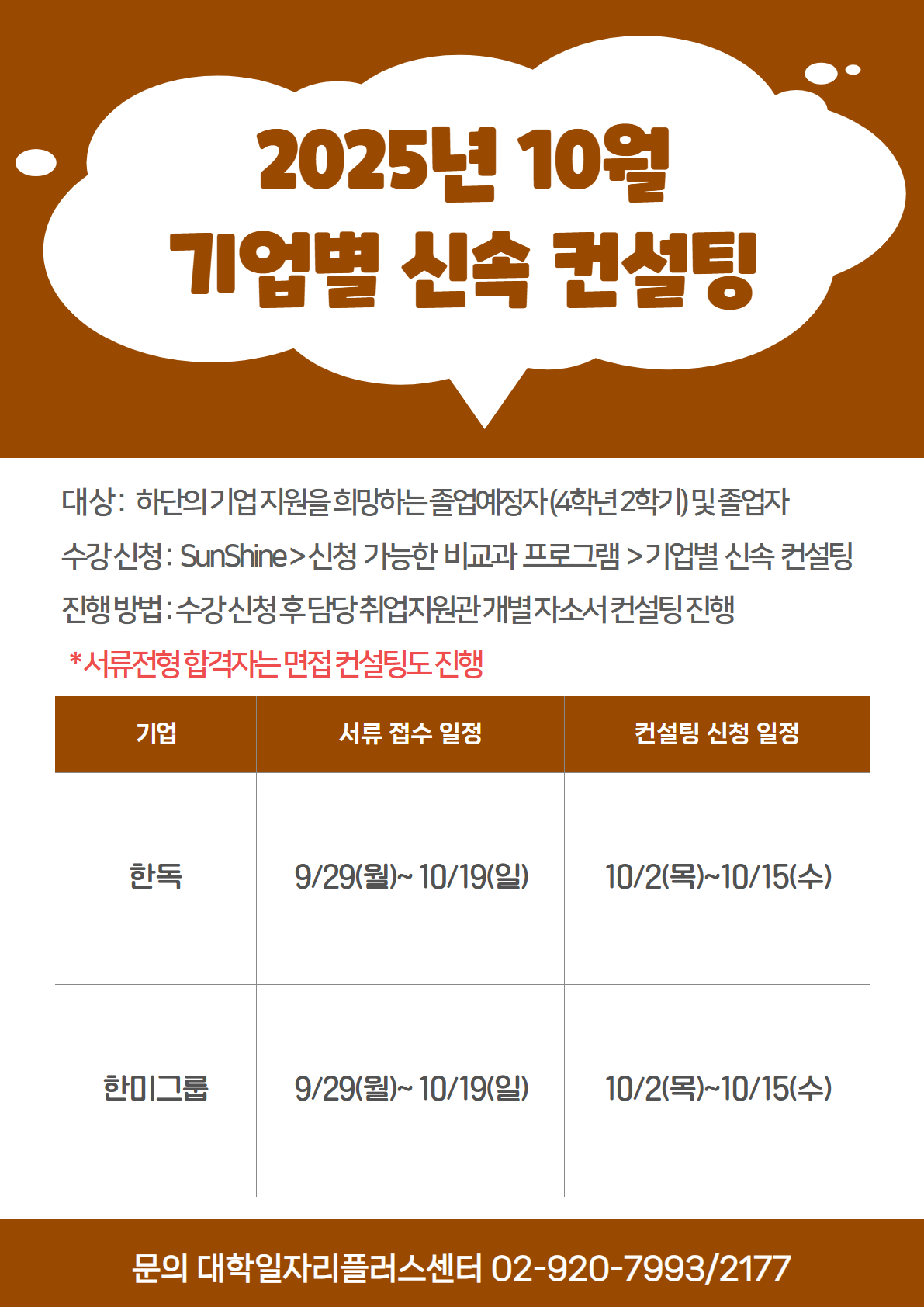 [대학일자리플러스센터] 10월 기업별 신속 컨설팅