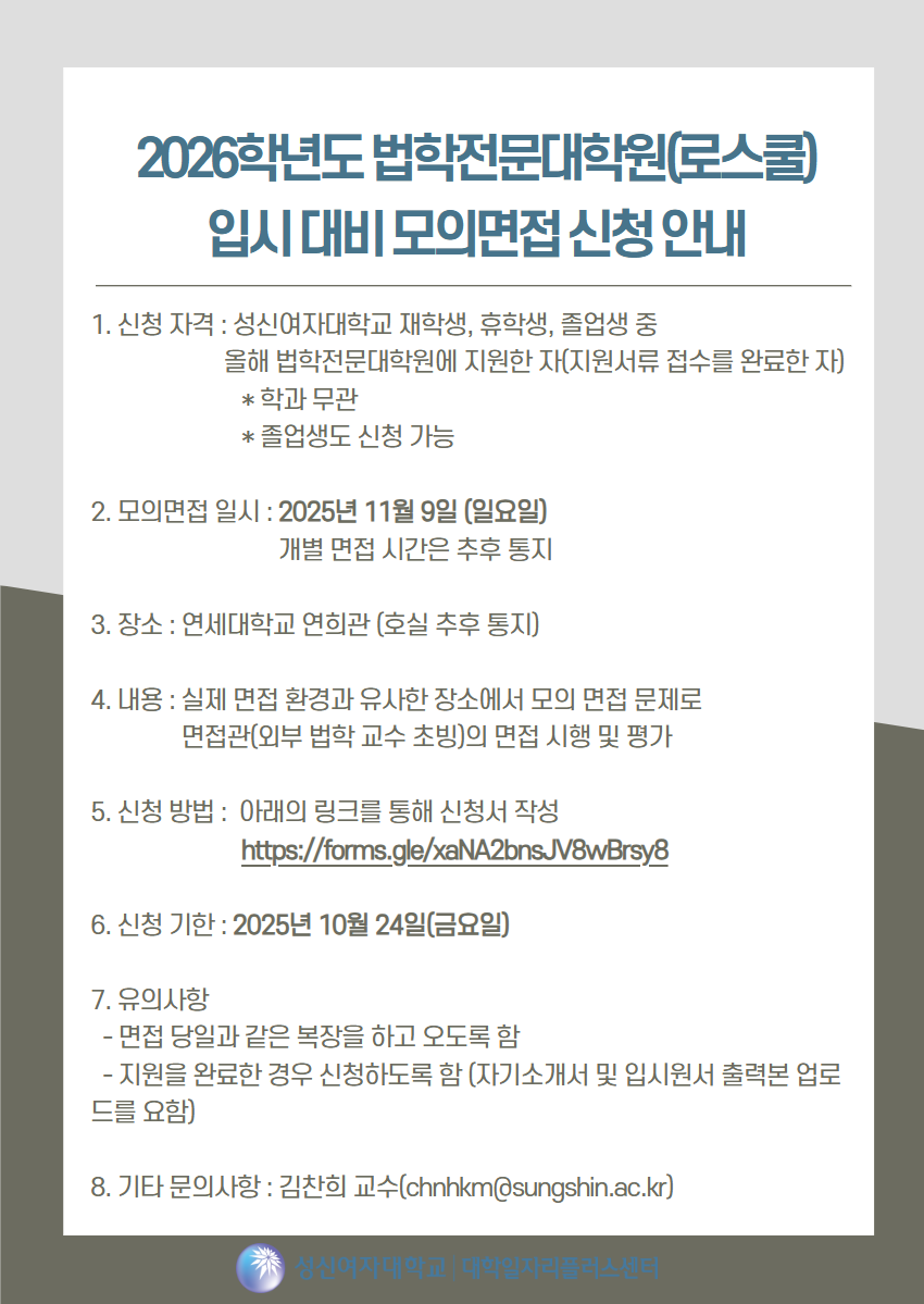 [대학일자리플러스센터] 2026학년도 법학전문대학원(로스쿨) 입시 대비 모의면접