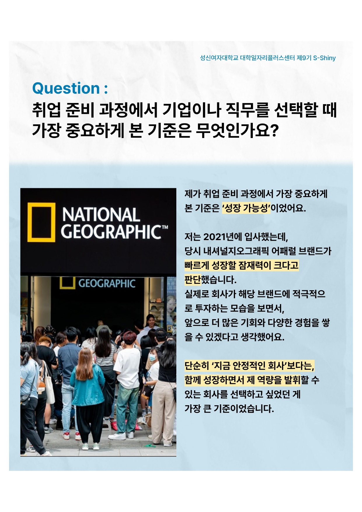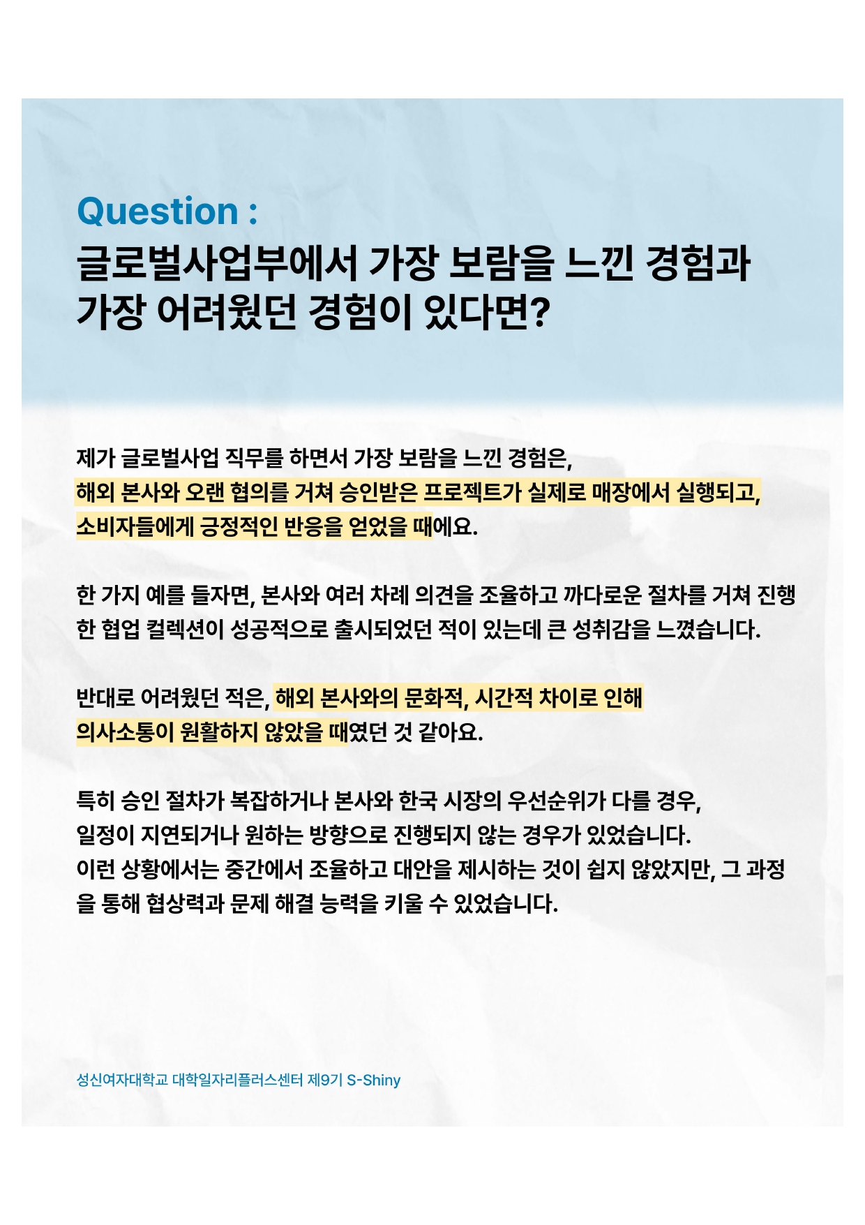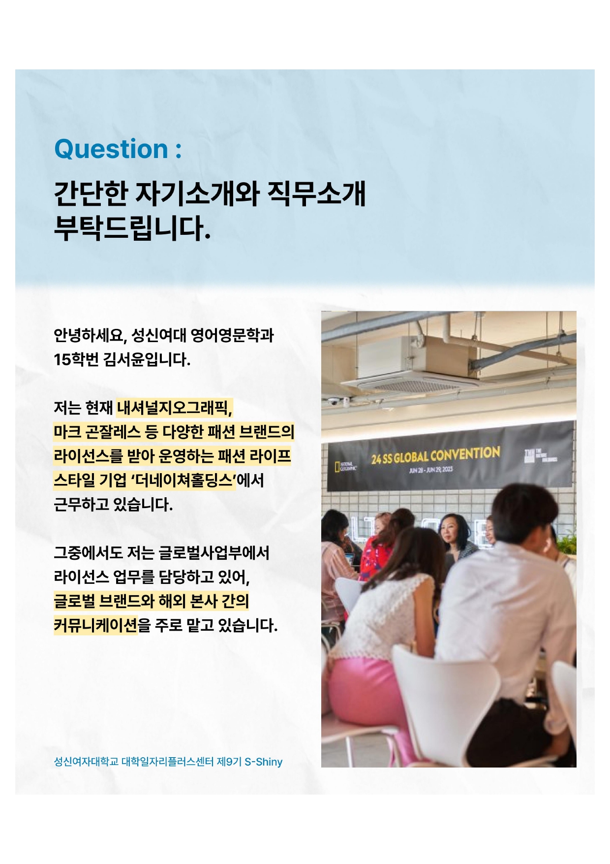S-Shiny가 만난 졸업생 직무 인터뷰 [더네이쳐홀딩스/글로벌사업부]