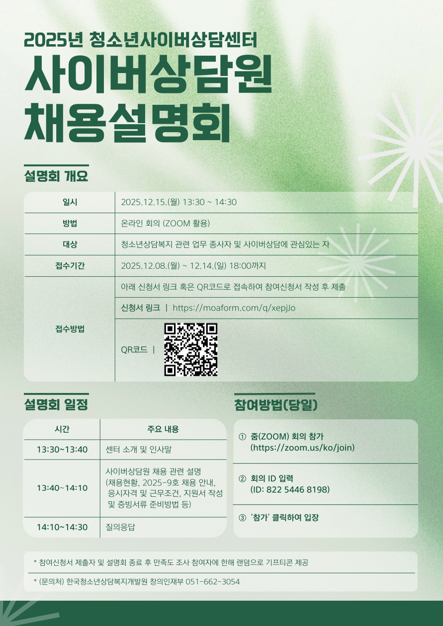 [대학일자리플러스센터] 청소년사이버상담센터 사이버상담원 채용설명회