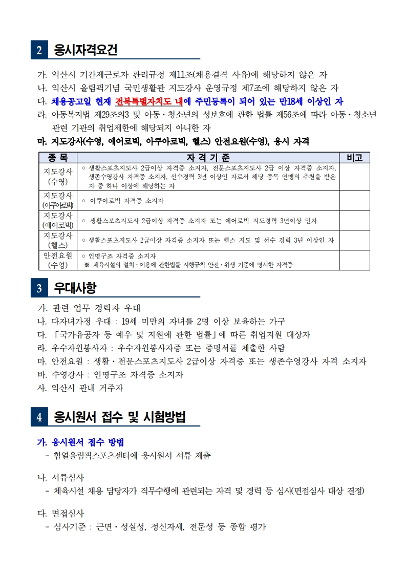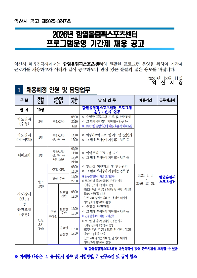 [대학일자리플러스센터] 함열올림픽스포츠센터 기간제근로자(지도강사) 채용 공고