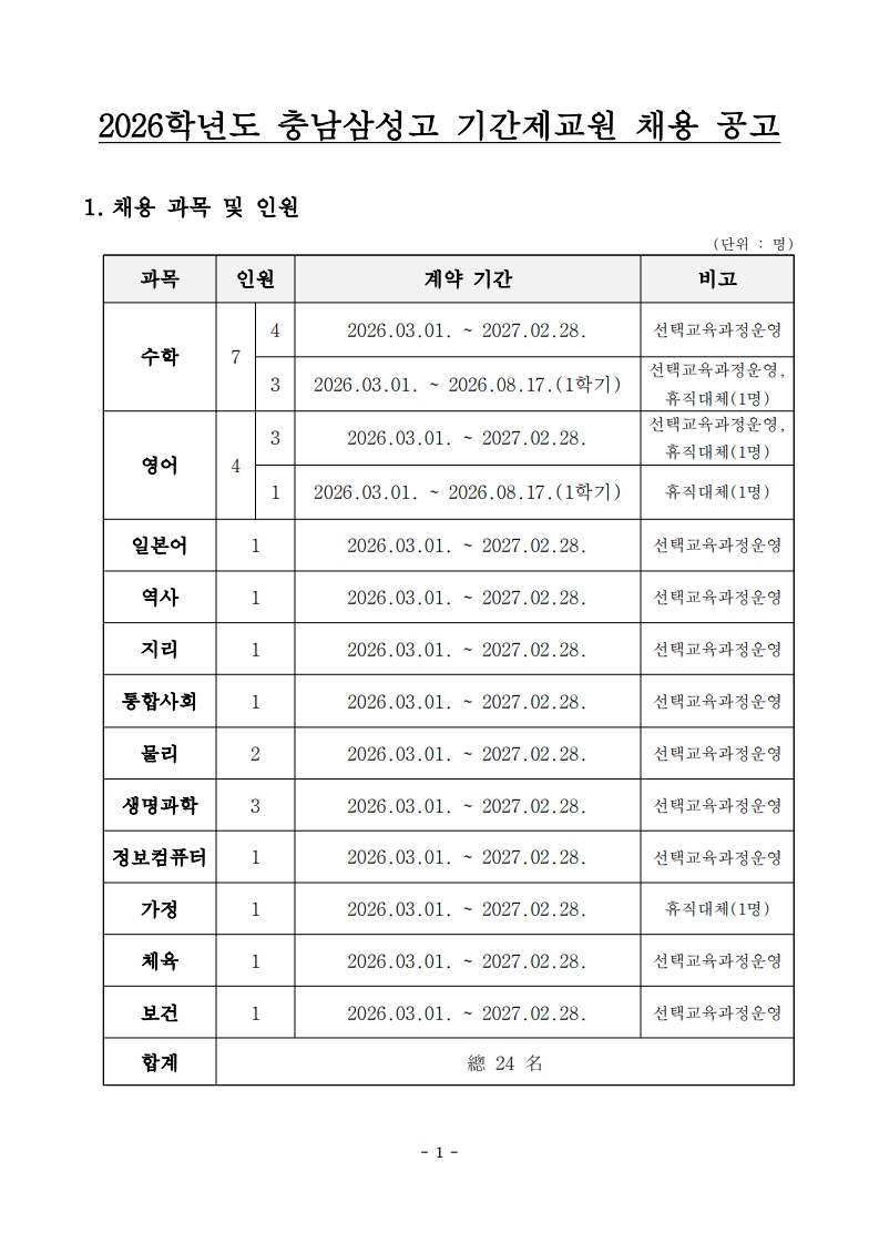 [충남삼성고등학교] 기간제교원 채용 공고 및 지원서식.hwp