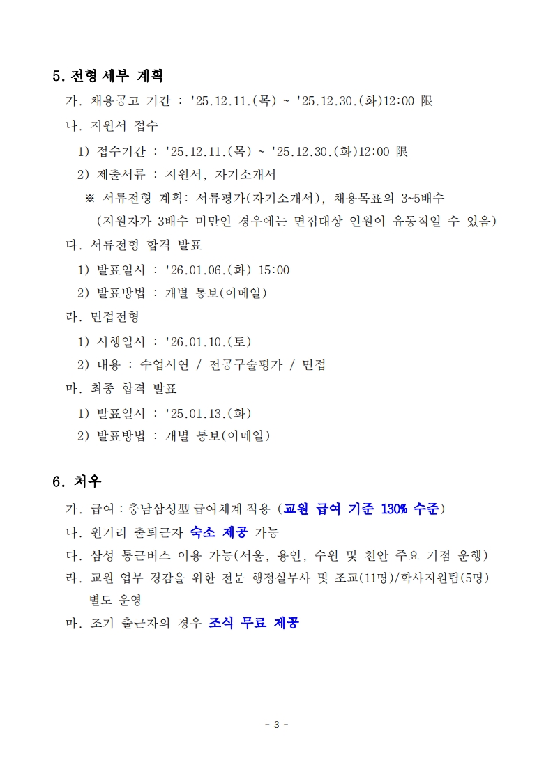 [대학일자리플러스센터] 충남삼성고등학교 기간제교원 채용 공고