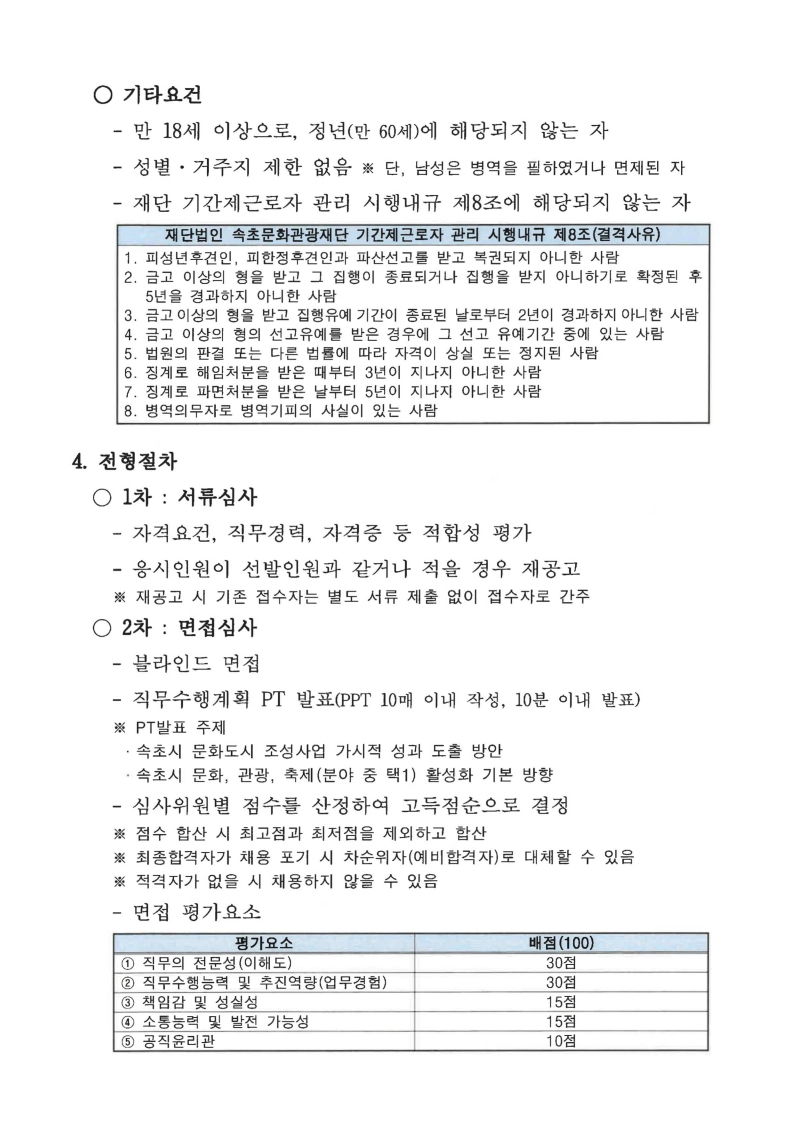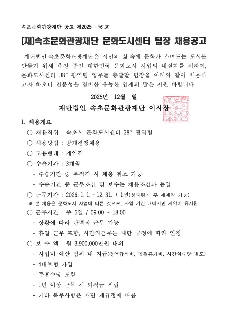 [대학일자리플러스센터] 속초문화관광재단 문화도시센터 팀장 채용공고