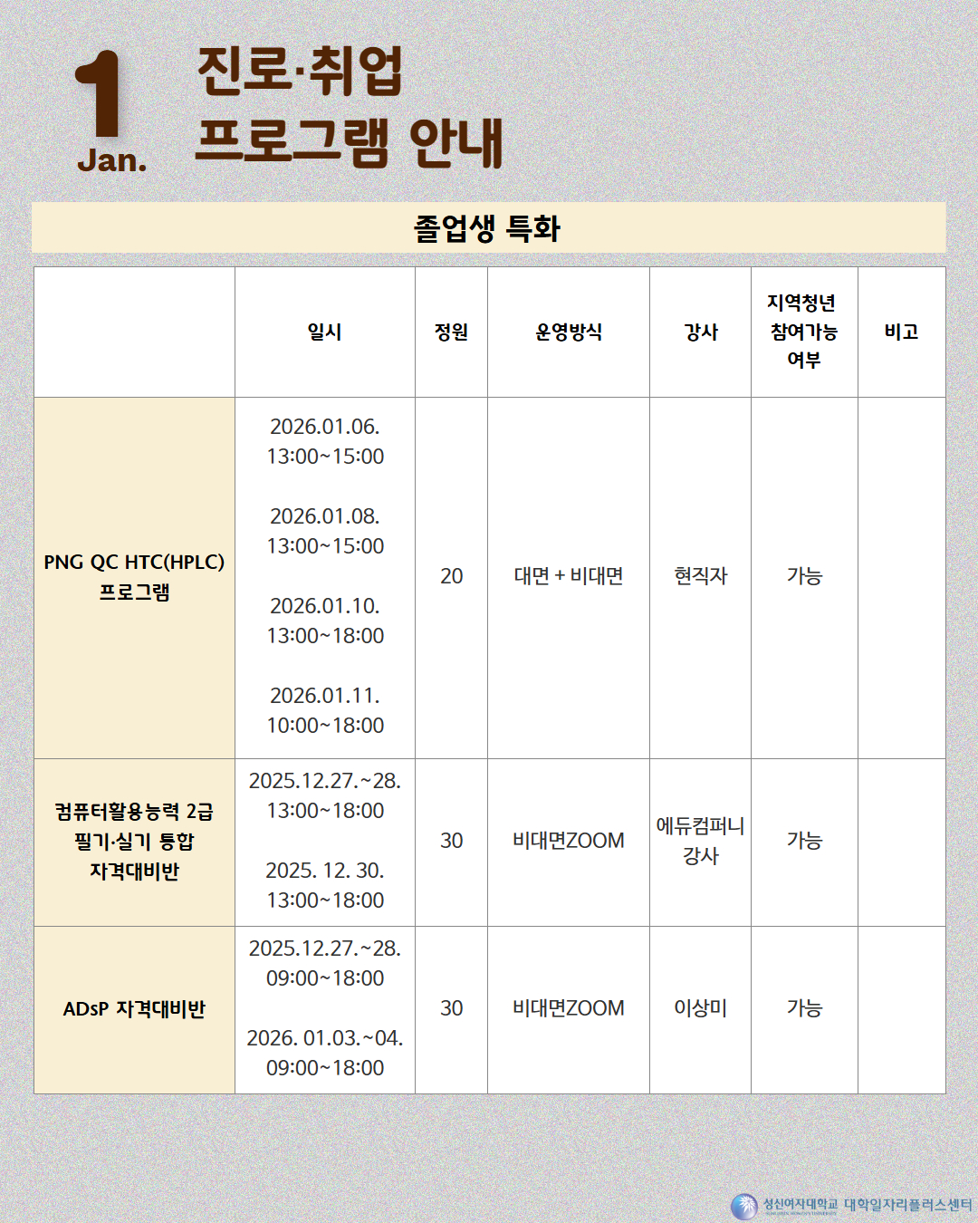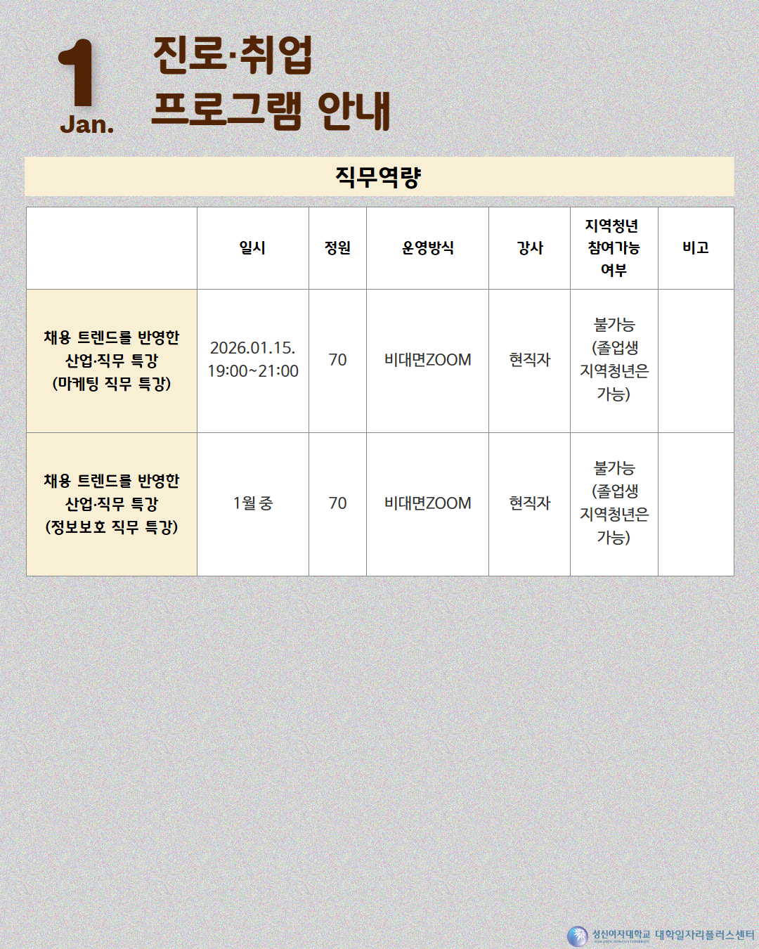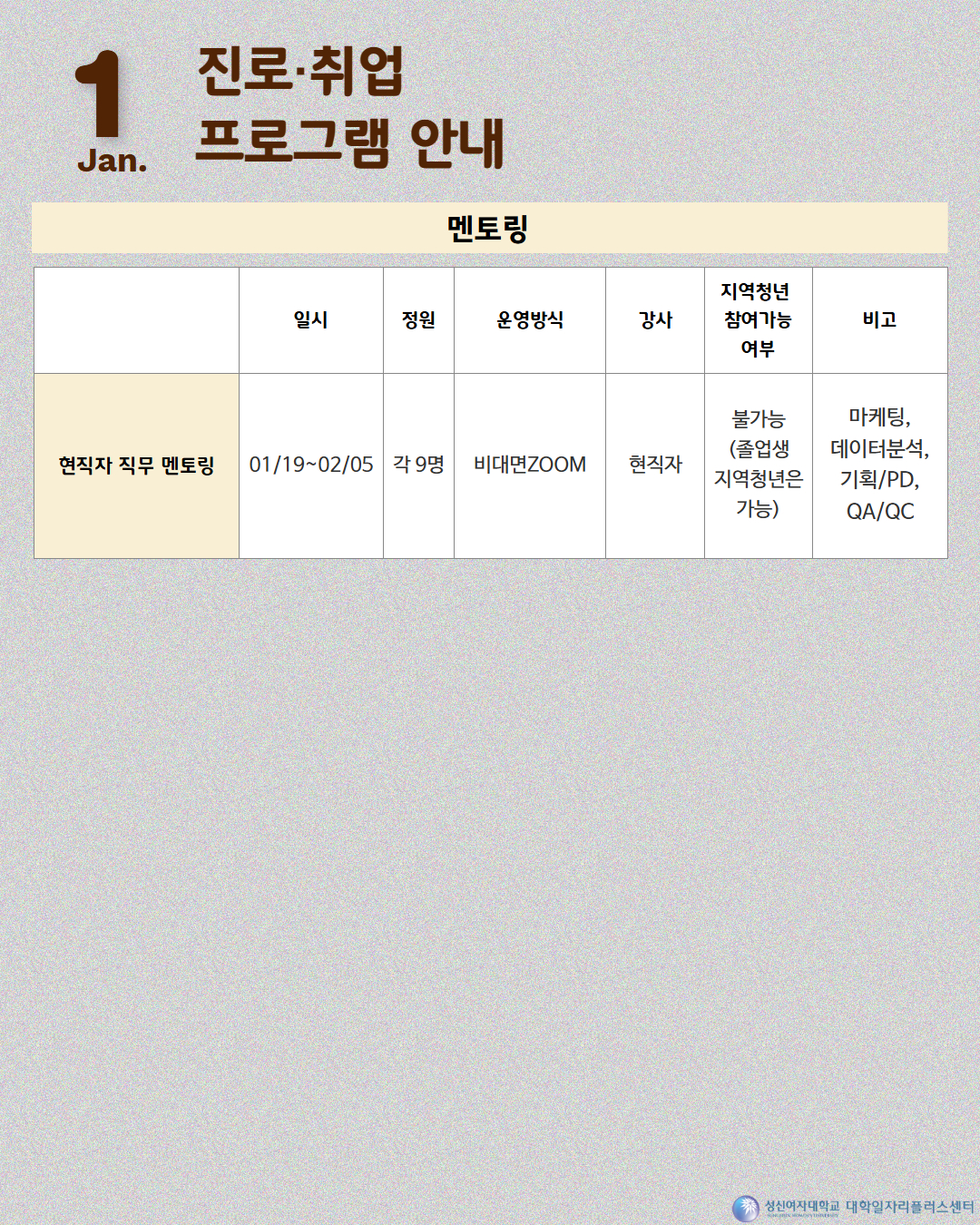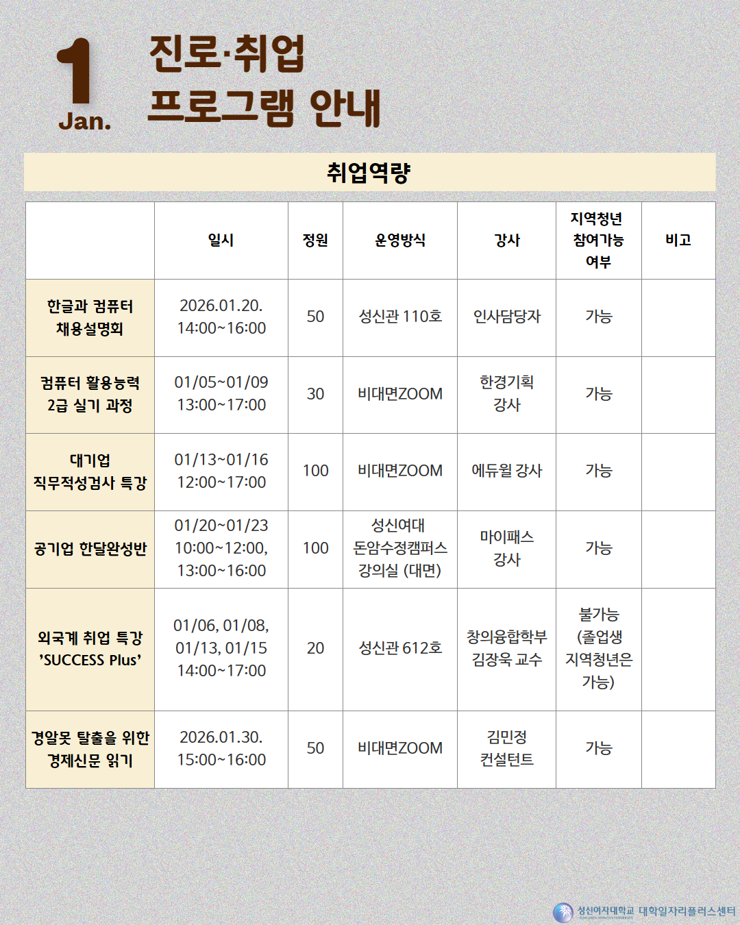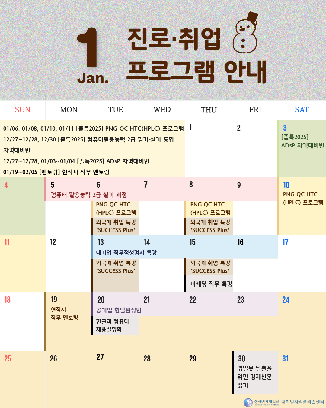 [대학일자리플러스센터] 1월 프로그램 달력
