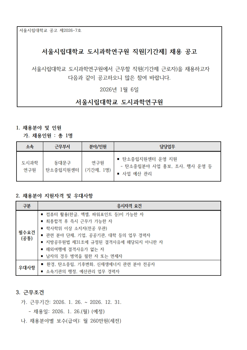 [대학일자리플러스센터] 동대문구 탄소중립지원센터 연구원 채용 공고