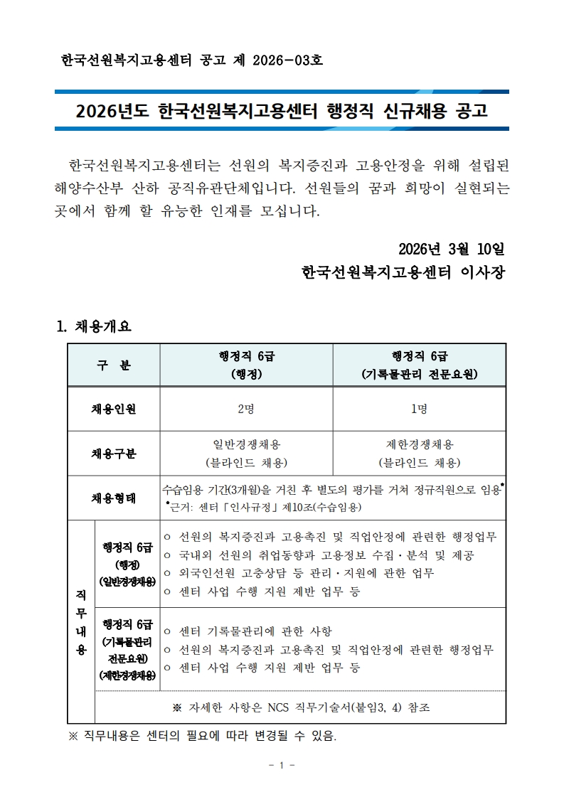 [한국선원복지고용센터] 2026년도 행정직 신규채용 공고.hwp