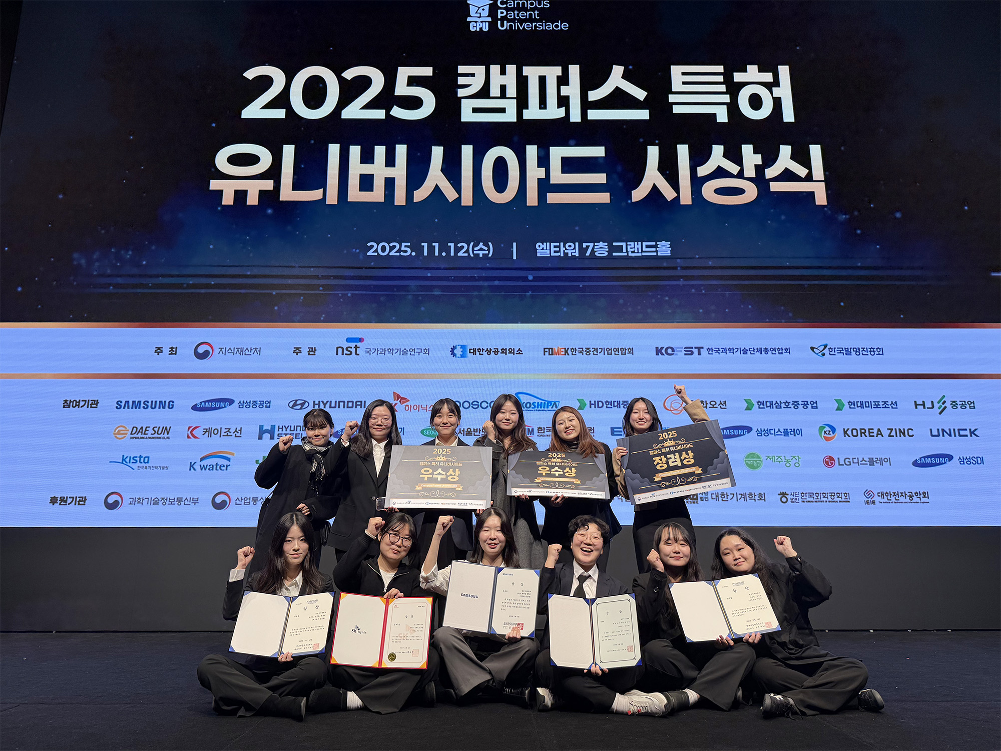 특허청이 주최한 ‘2025 캠퍼스 특허 유니버시아드(Campus Patent Universiade, 이하 CPU)’에서 <발명사업화 부문>과 <특허전략수립 부문>에 출전한 성신여자대학교(총장 이성근) 학생 5개 팀이 수상 했다.