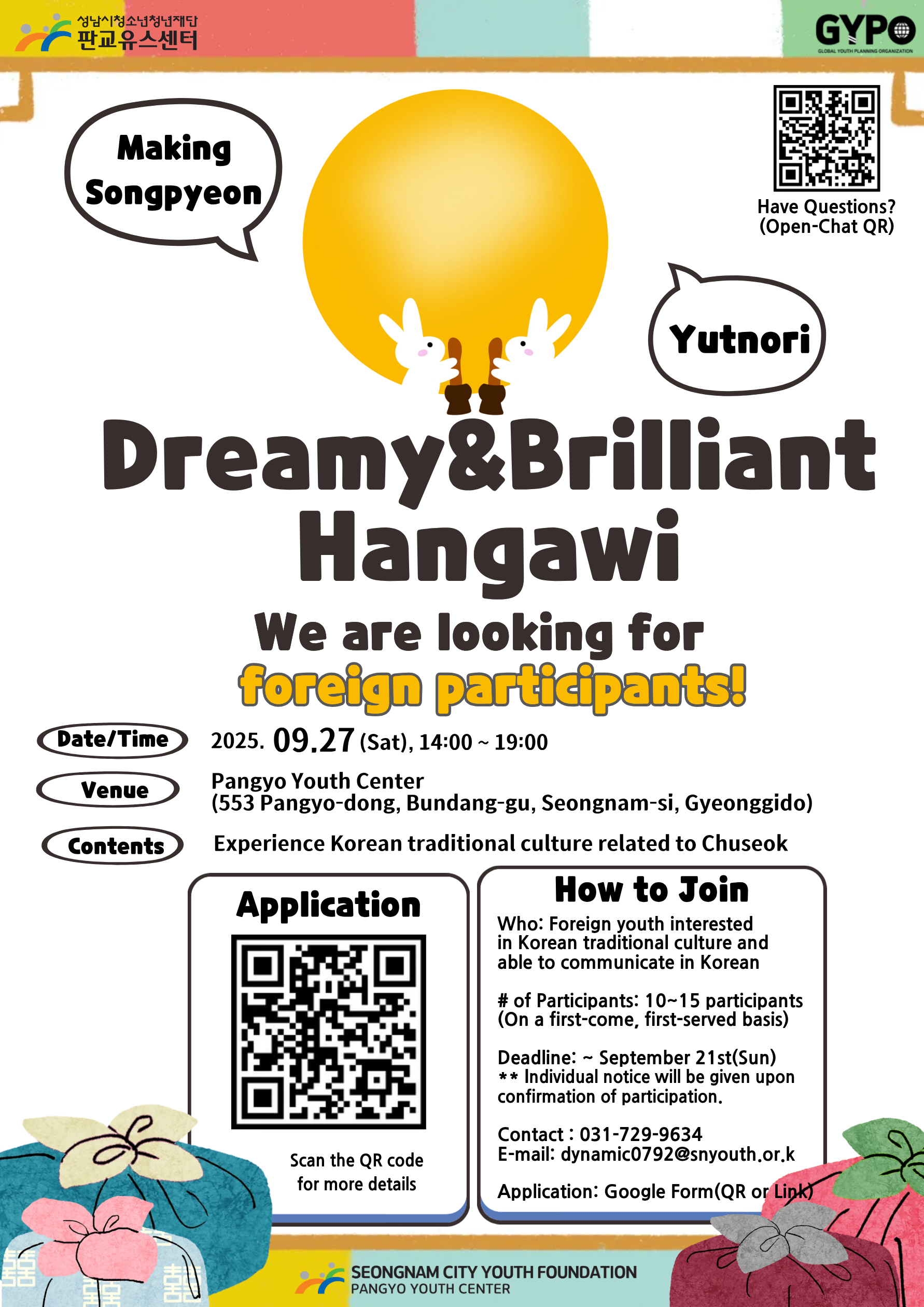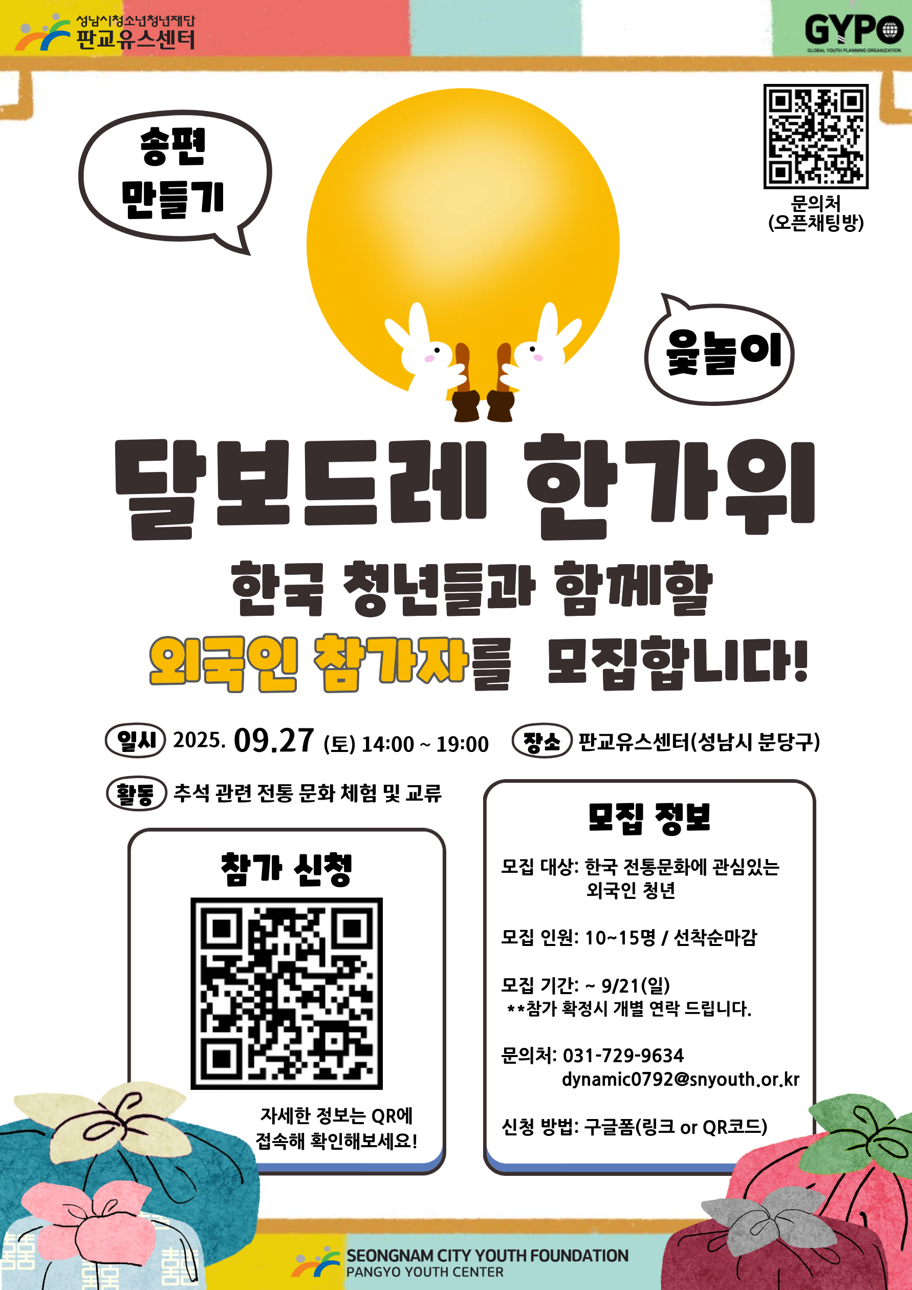 청년 글로벌 문화교류 ‘달보드레 한가위’ 외국인 참가자 모집 안내
