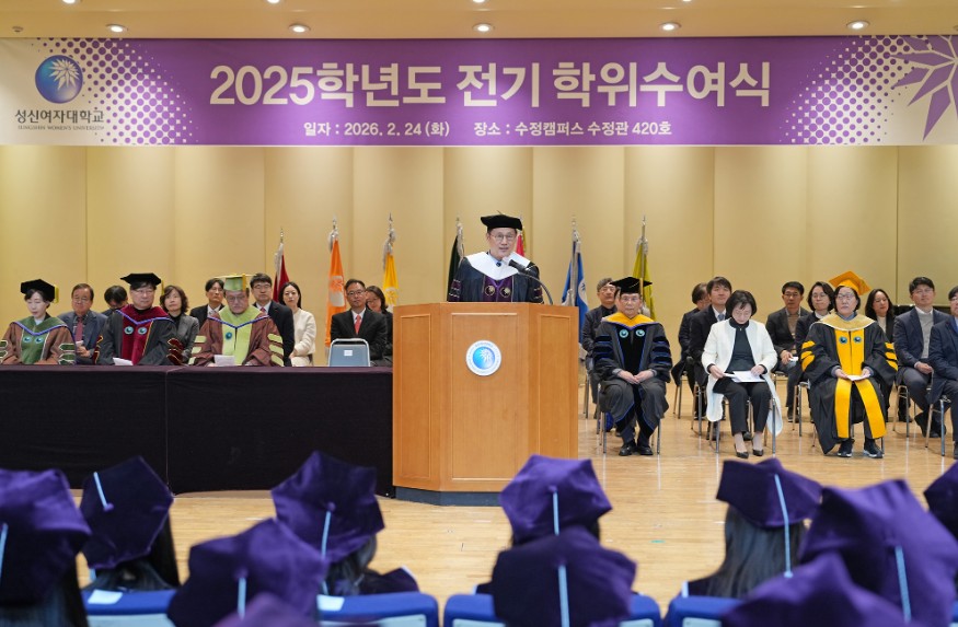 이성근 총장은 2월 24일(화) 수정캠퍼스 수정관 420호 및 운정그린캠퍼스 중강당에서 열린 ‘2025학년도 전기 학위수여식’에 참석하였다. 이성근 총장은 ‘치열한 경쟁의 논리에서 벗어나 타인과 조화를 이루는 공존의 지혜, 협력과 양보의 가치를 실천할 때 비로소 진정한 성장의 결실을 맺을 수 있다’고 강조하고 ‘성신의 찬란한 역사를 일궈온 졸업생들이 사회라는 새로운 무대에서 당당히 나아갈 수 있도록 변함없는 신뢰와 지지로 앞날을 응원한다’는 축사를 전했다.