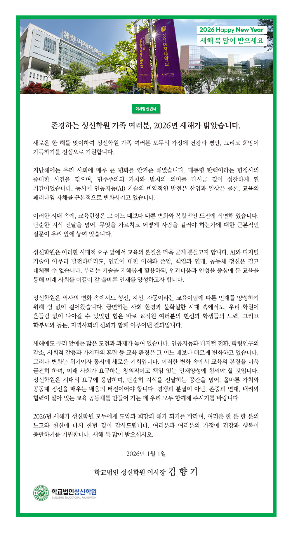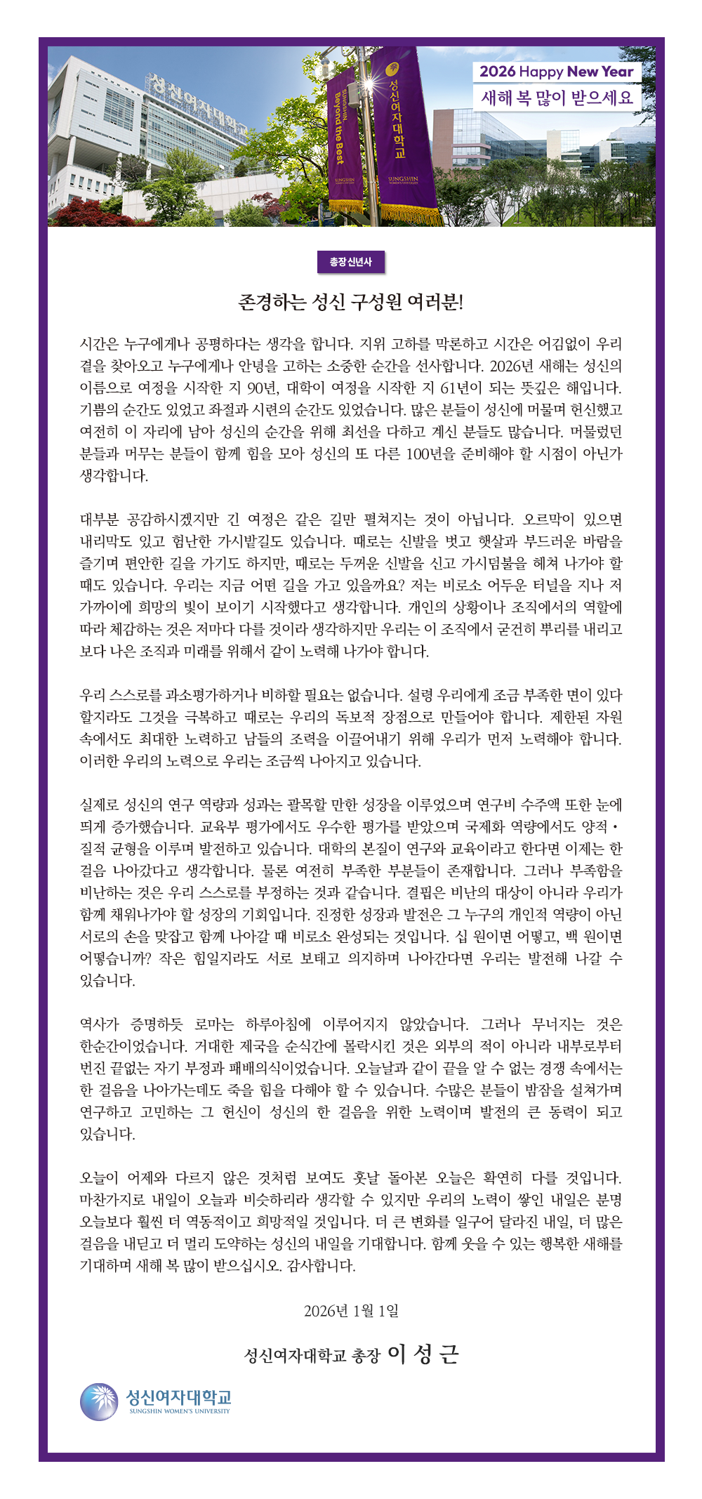 2026년 학교법인 성신학원 이사장, 성신여대 총장 신년사