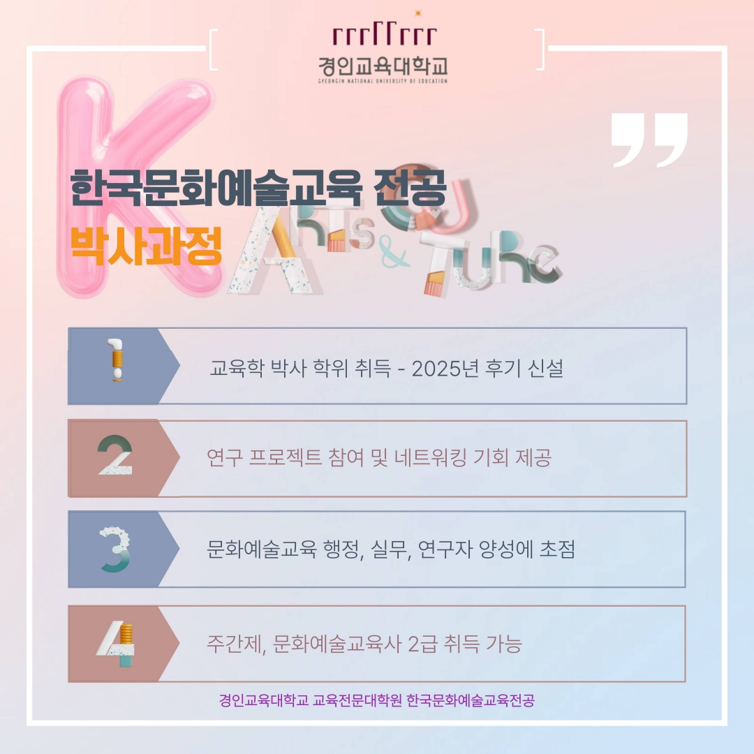 [대학일자리플러스센터] 경인교대 교육전문대학원 한국문화예술교육전공 석박사 모집공고