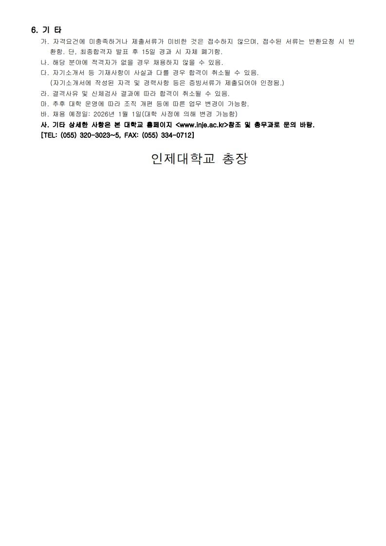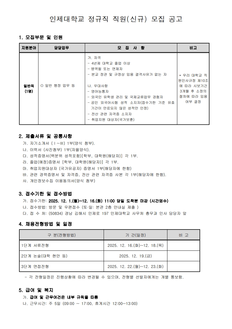 [대학일자리플러스센터] 인제대학교 정규직 직원 모집 공고