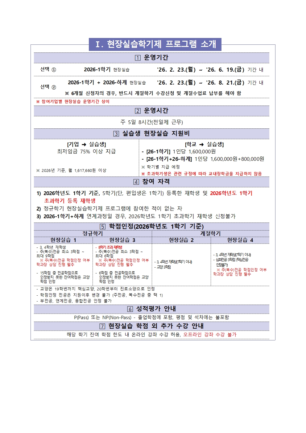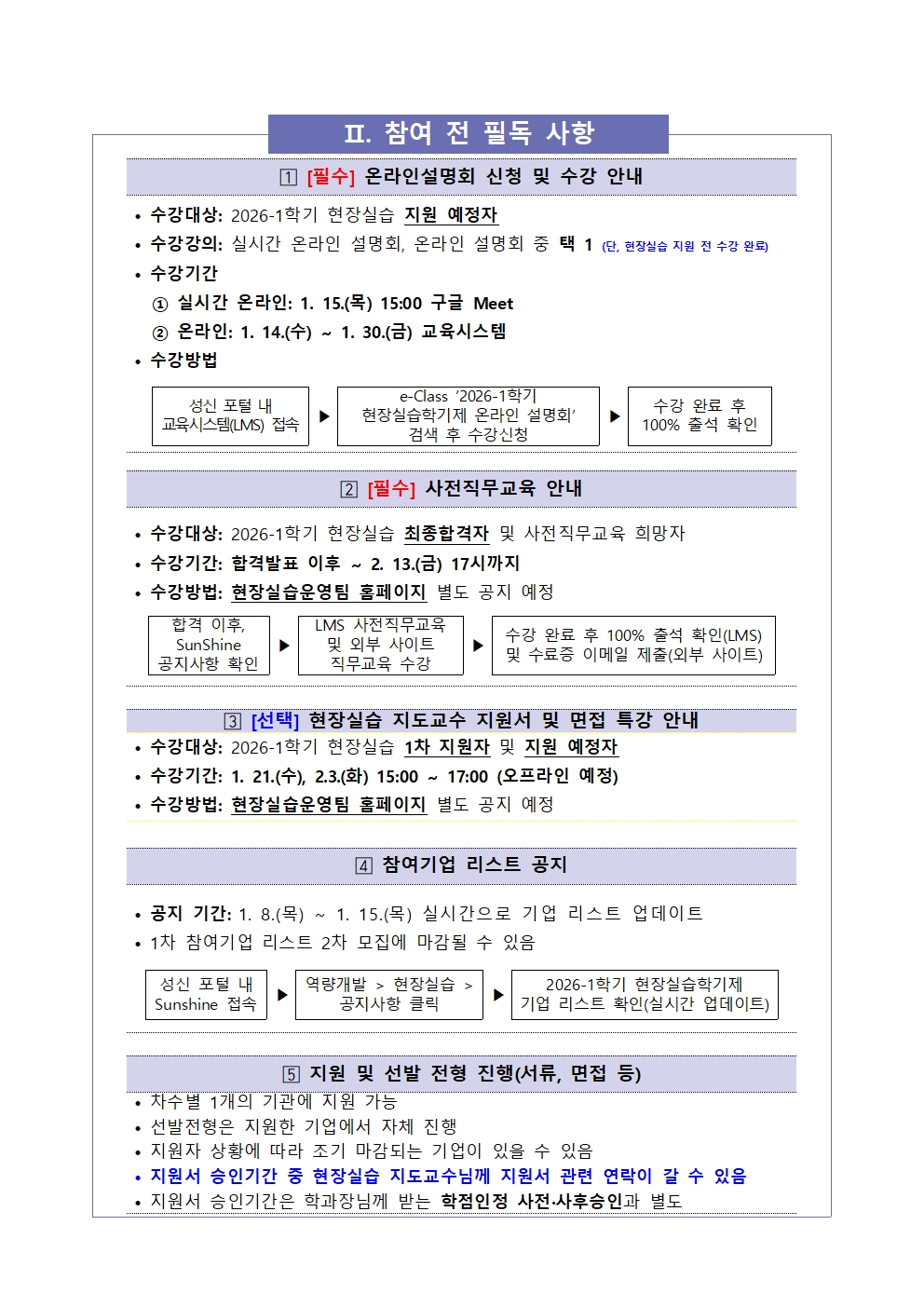 fnctId=bbs,fnctNo=3395 [행사/홍보] [현장실습운영팀] 2026-1 현장실습학기제(Co-op) 참여학생 모집 안내 작성일 2026.01.08 수정일 2026.01.08 작성자 서비스디자인공학과 조회수 121 글번호 150520 첨부파일 첨부파일이(가) 없습니다.