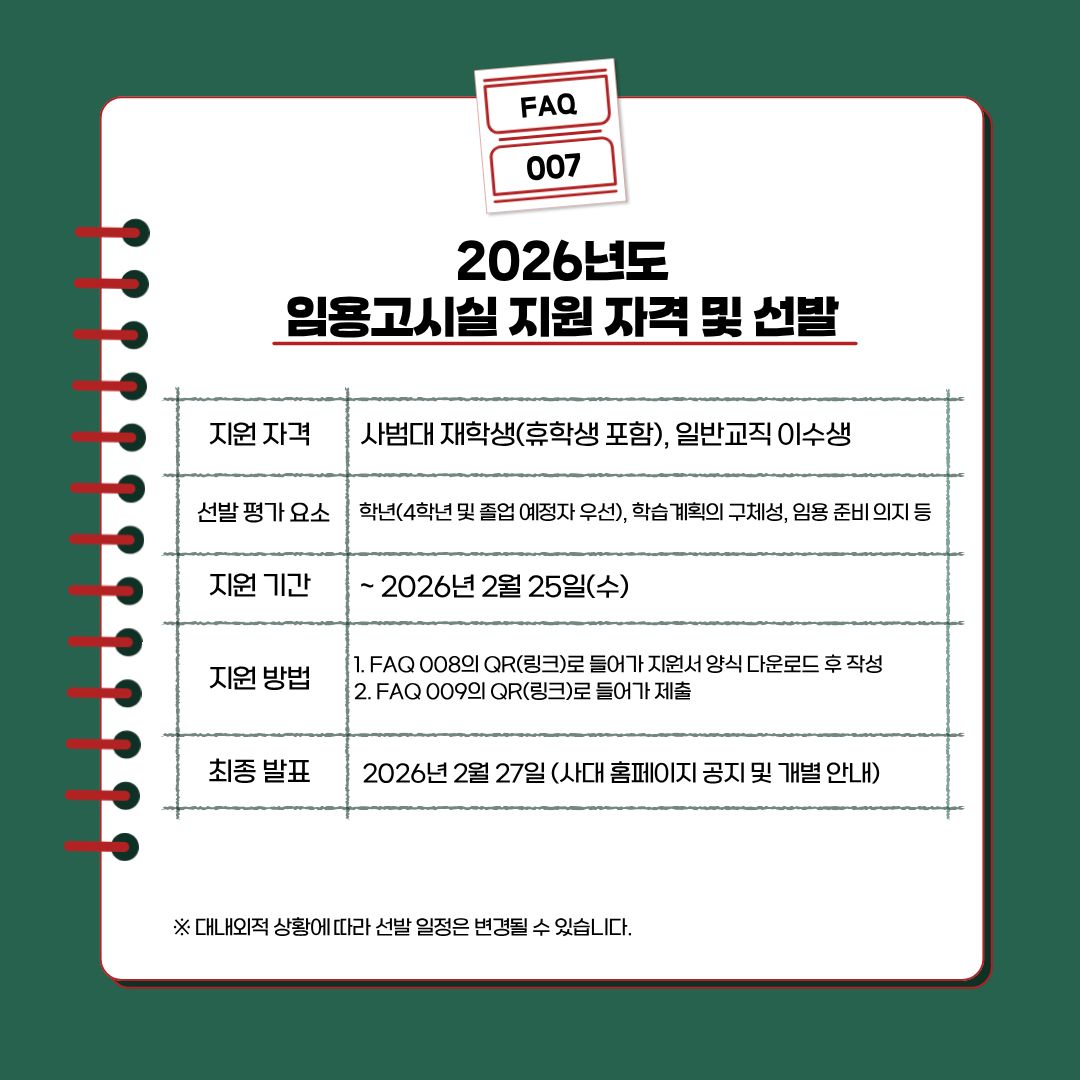 [모집·채용] (지원기간 연장) 2026학년도 임용고시반 실원 선발 안내