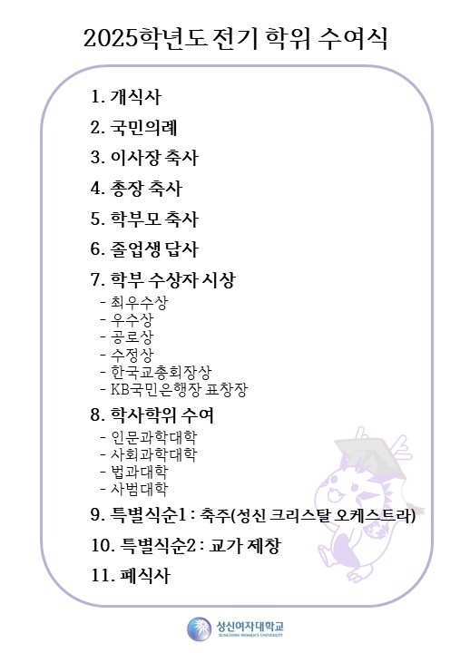 [행사] 2025학년도 전기 학위수여식 단상 참여 확정 명단 및 식순 안내(수정)