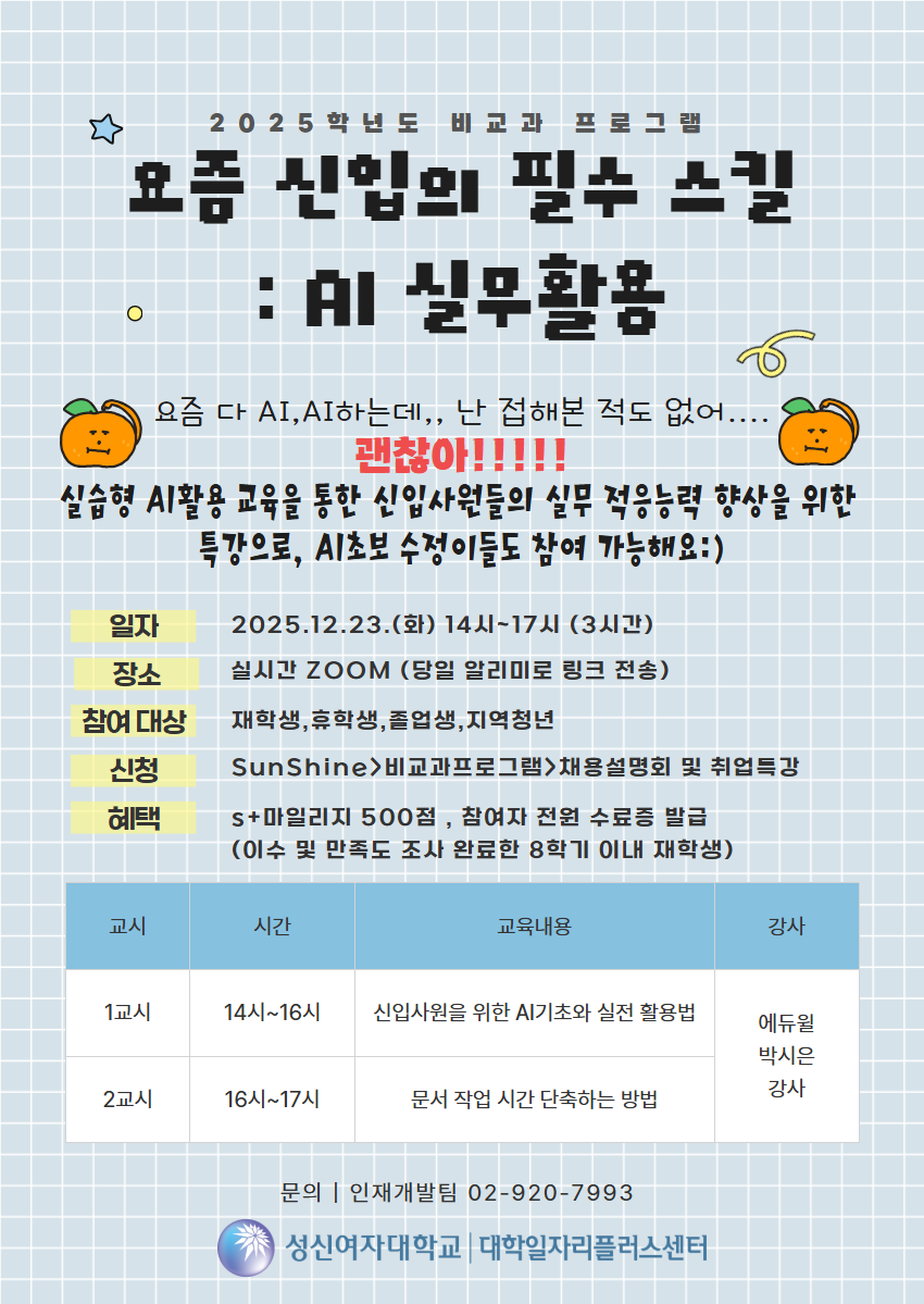 AI 초보 수정이들도 참여 가능한 실습형 AI 활용 특강이 열립니다!
