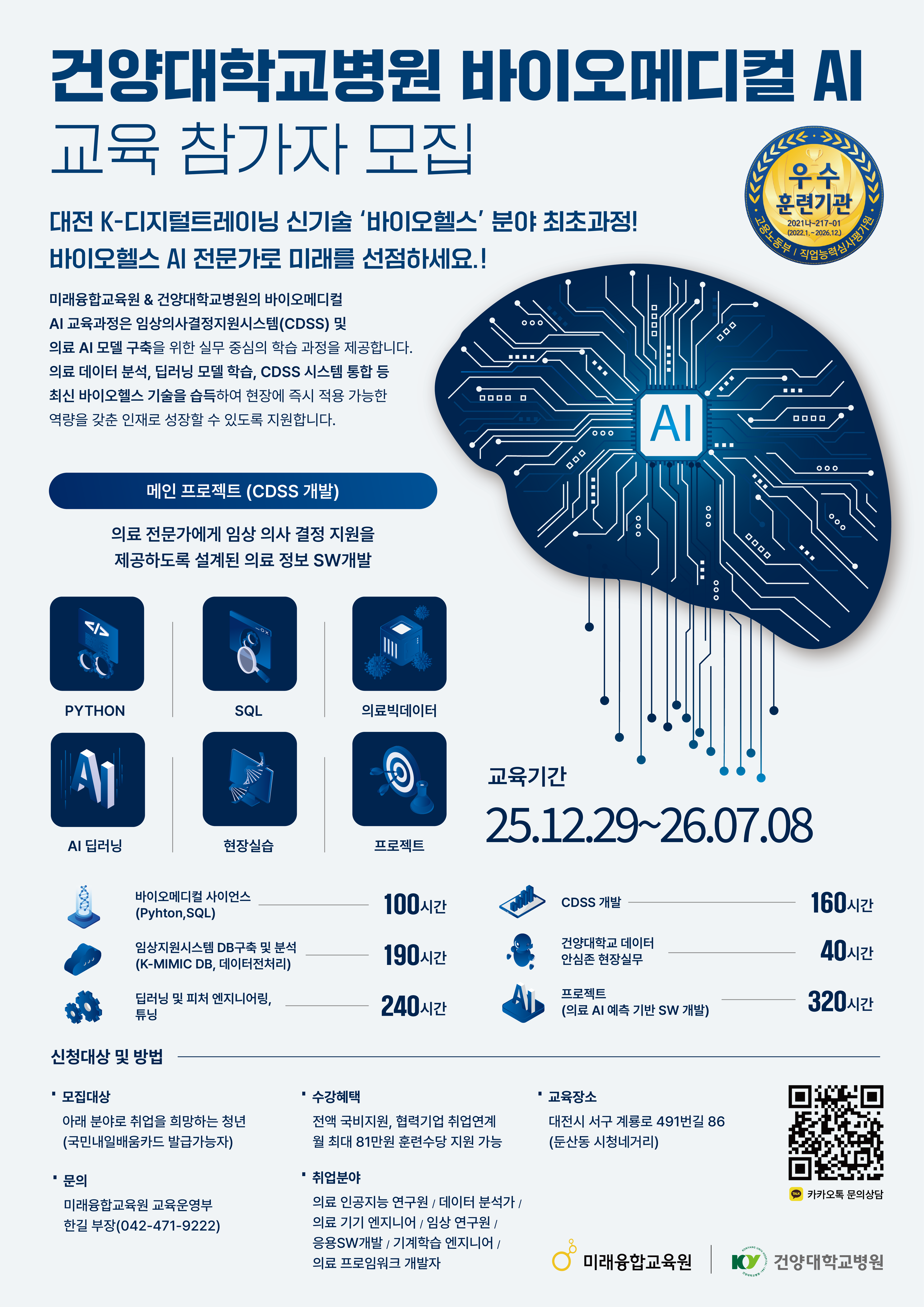 [건양대학교병원] 바이오 메디컬 AI 과정 참여자 모집 안내