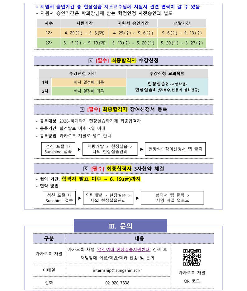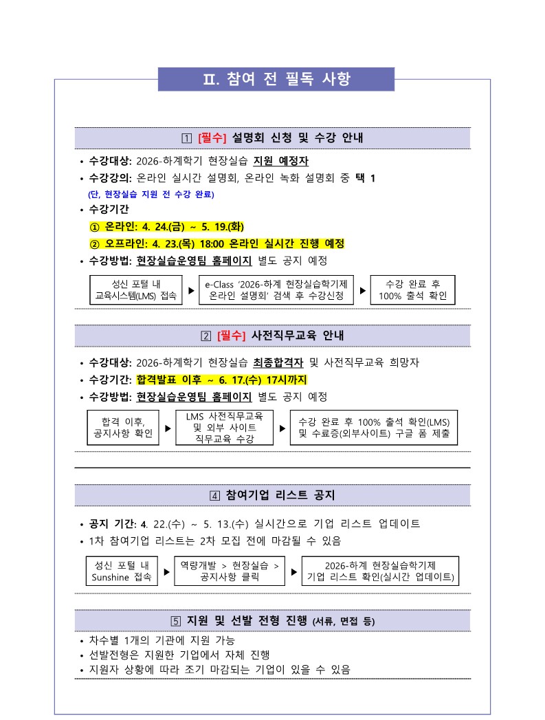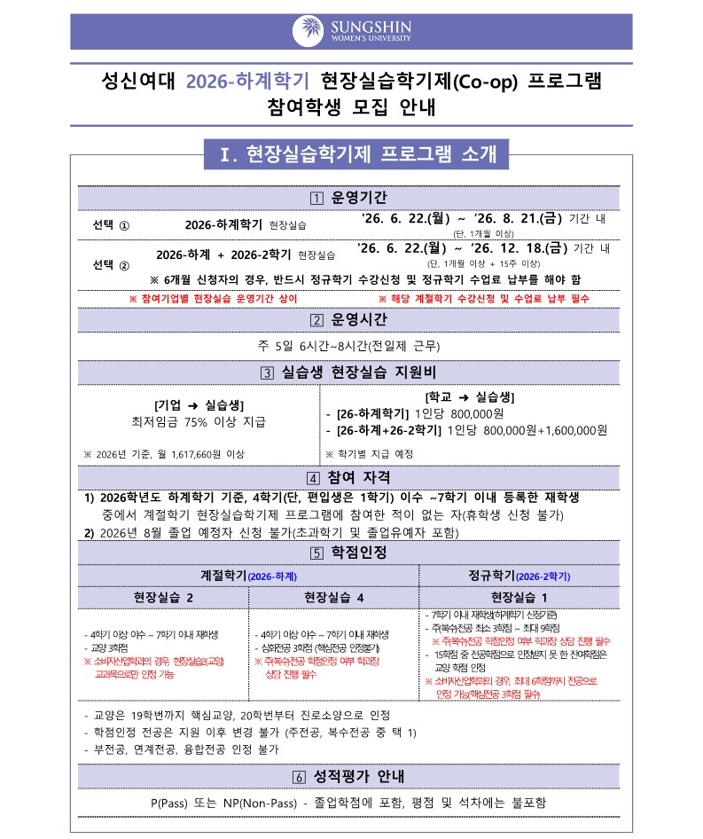 [교내 공지] [현장실습운영팀] 2026-하계 현장실습학기제(Co-op) 참여학생 모집 안내