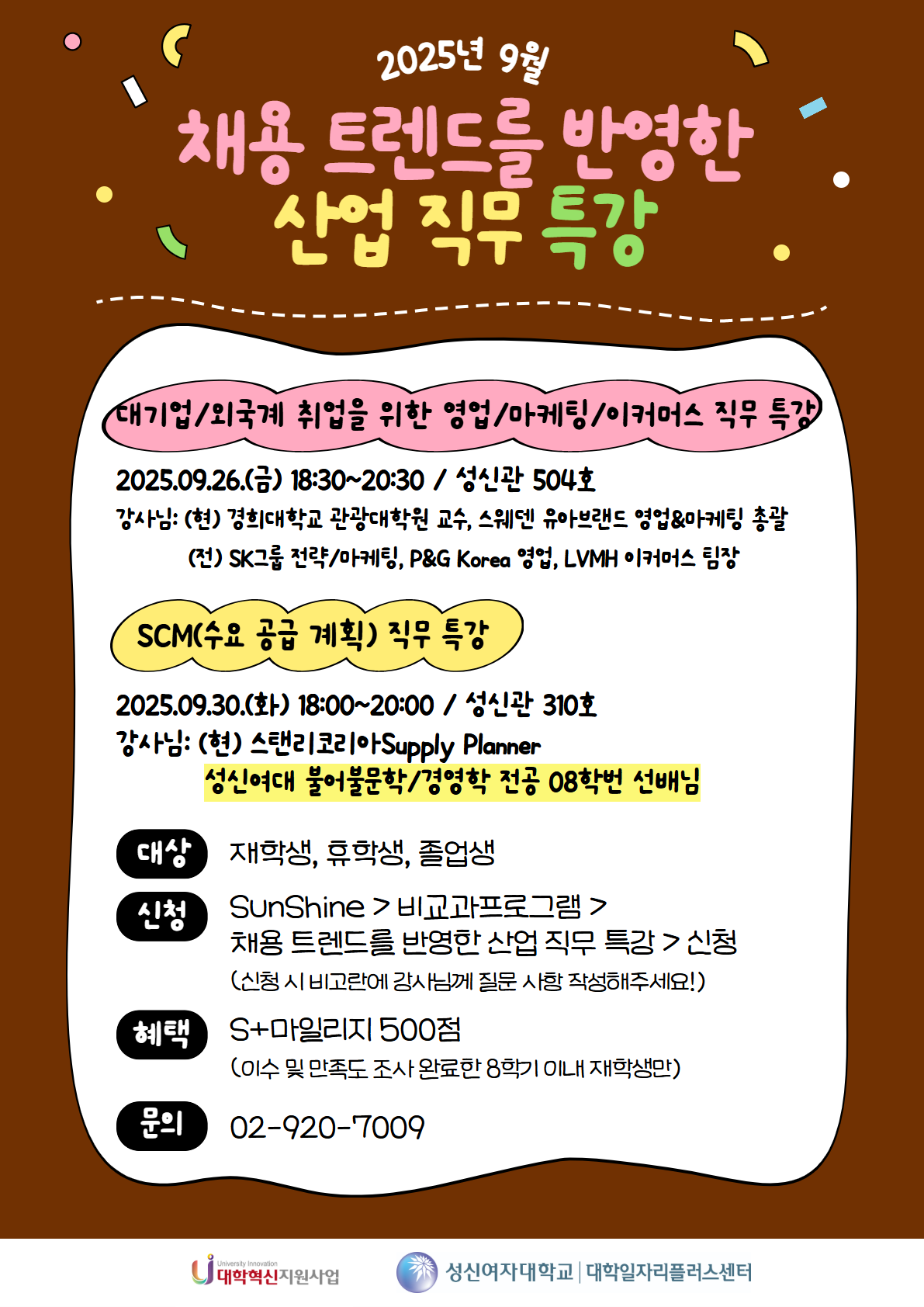 4. 문의: 성신여자대학교 대학일자리플러스센터 (02-920-7009)