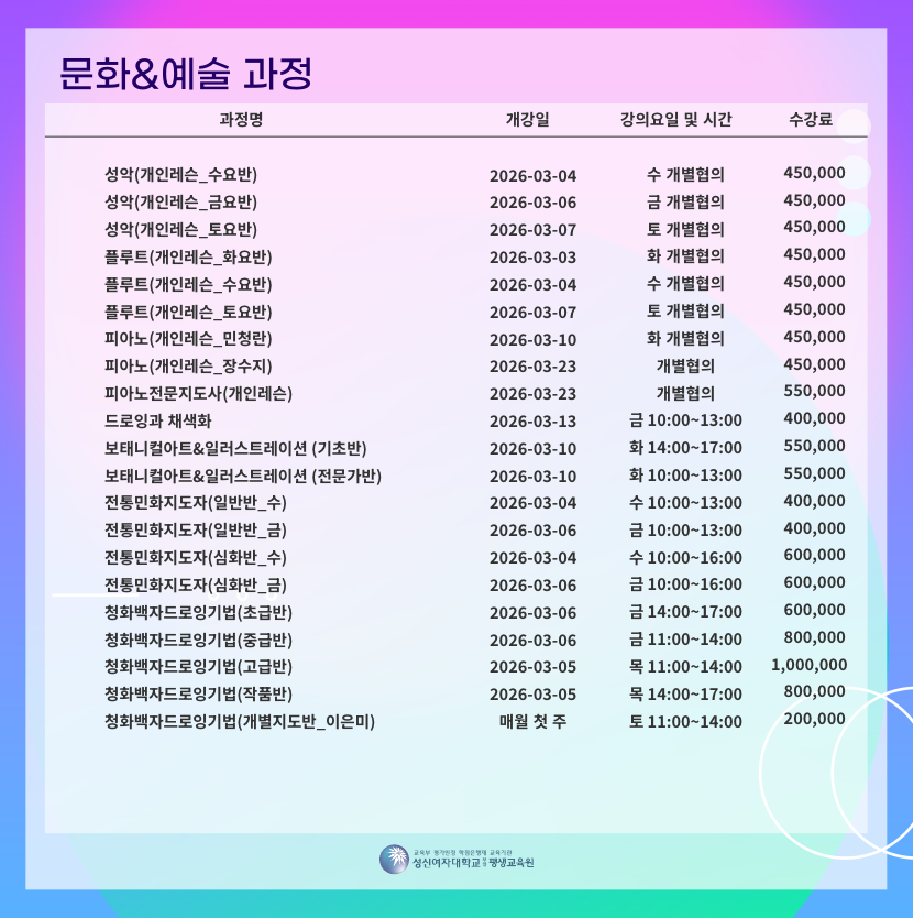 ○ 문의처: ☏ 02-920-7412, 평생교육과정 담당자 / 카카오톡 채널 바로가기