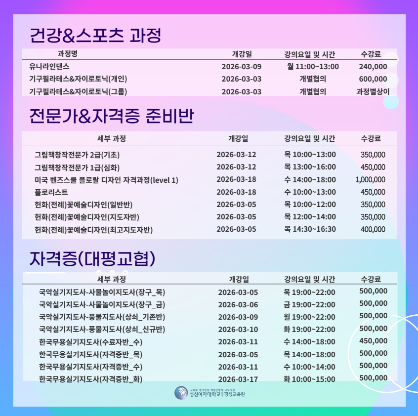 [전문교육과정] 2026-봄(3월개강) 전문교육과정 안내 및 수강생 모집