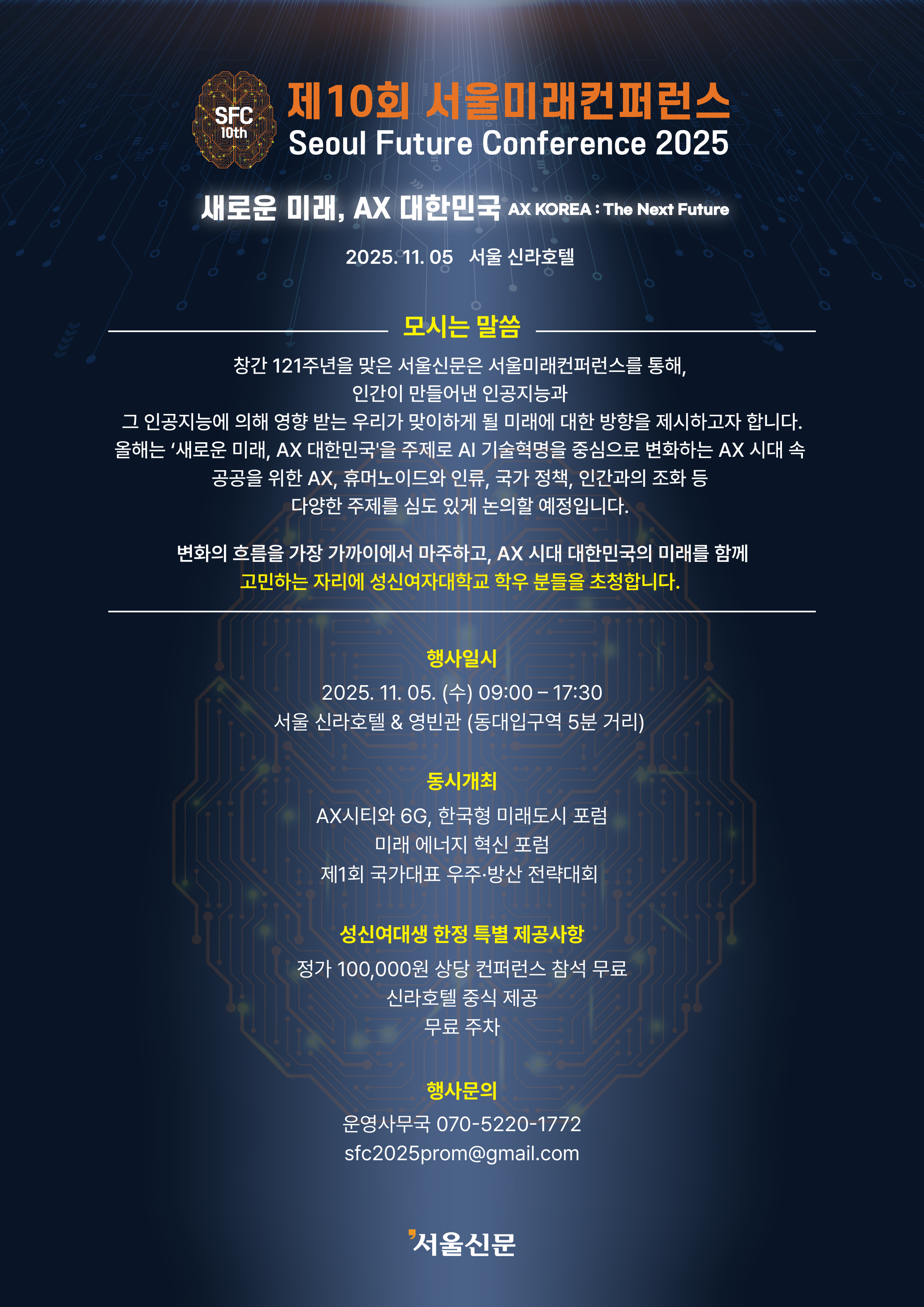 성신여대생 한정 제공사항 : 컨퍼런스 참석 무료, 호텔 중식, 주차