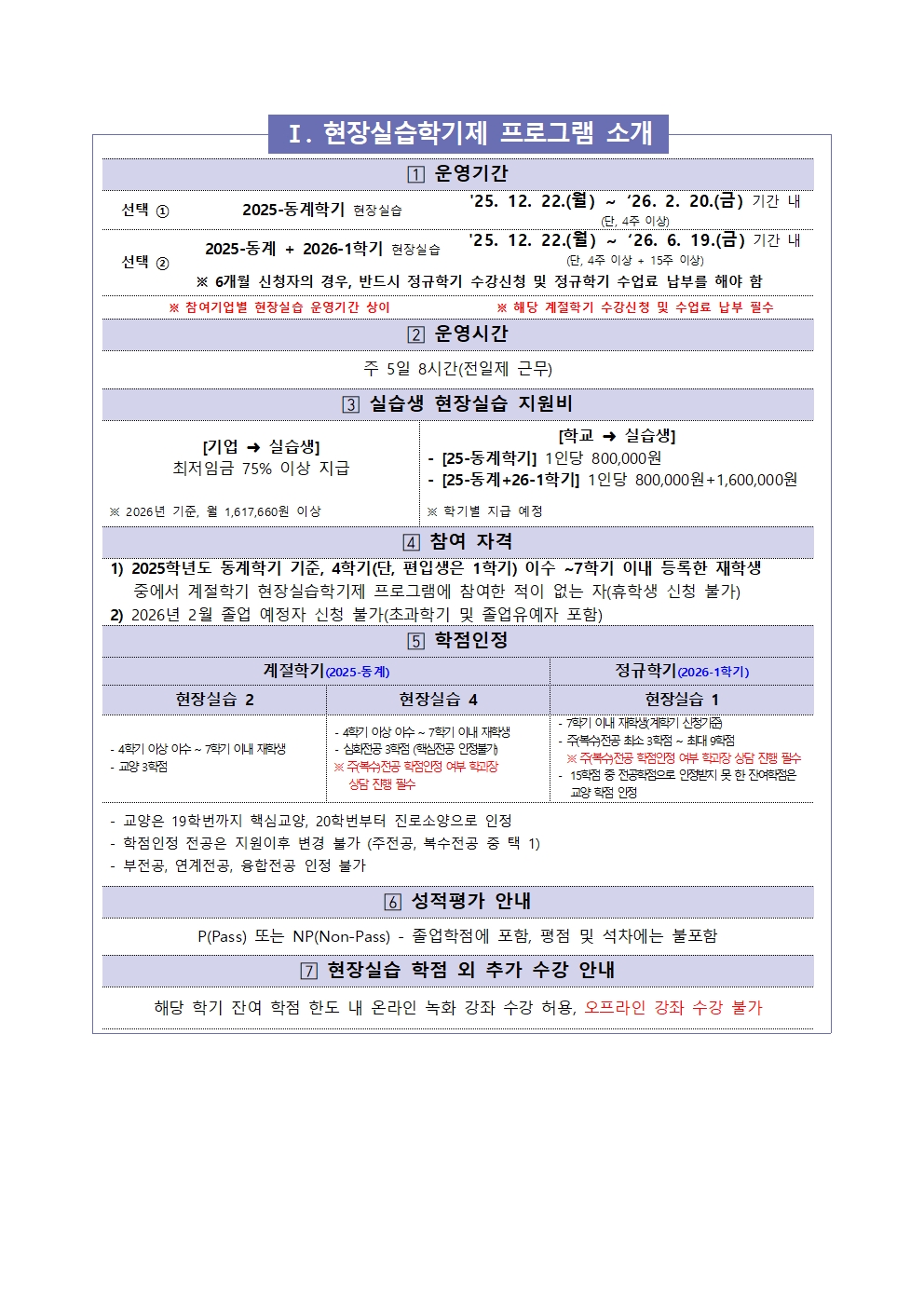 [교내 공지] [현장실습운영팀] 2025-동계 현장실습학기제(Co-op) 참여학생 모집 안내