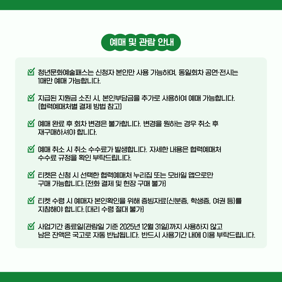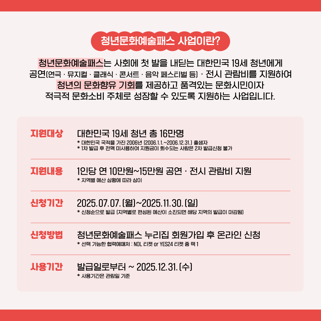 1. 2025년 청년문화예술패스 2차 발급 안내(마감 임박)