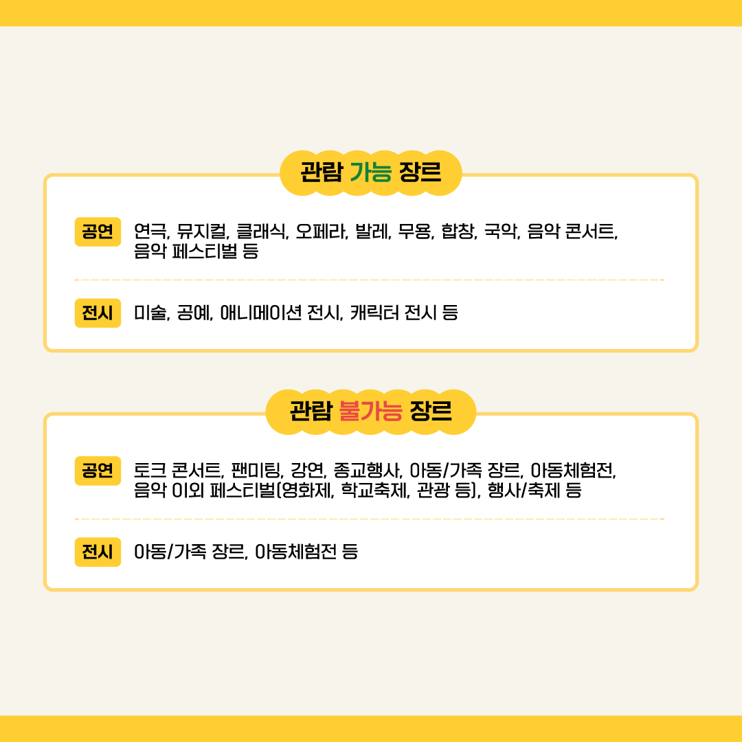 - 지원내용 : 1인당 연 10만원~15만원 공연·전시 관람비 지원