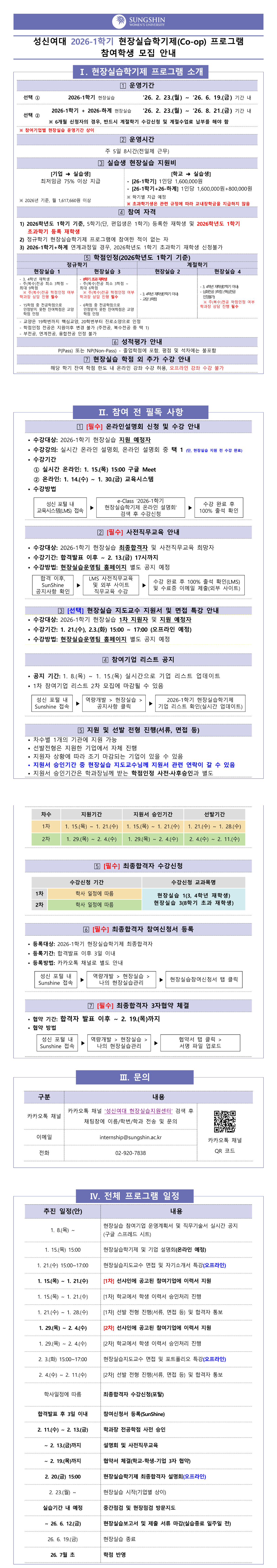 [현장실습운영팀] 2026-1학기 현장실습학기제(Co-op) 프로그램 참여학생 모집 안내