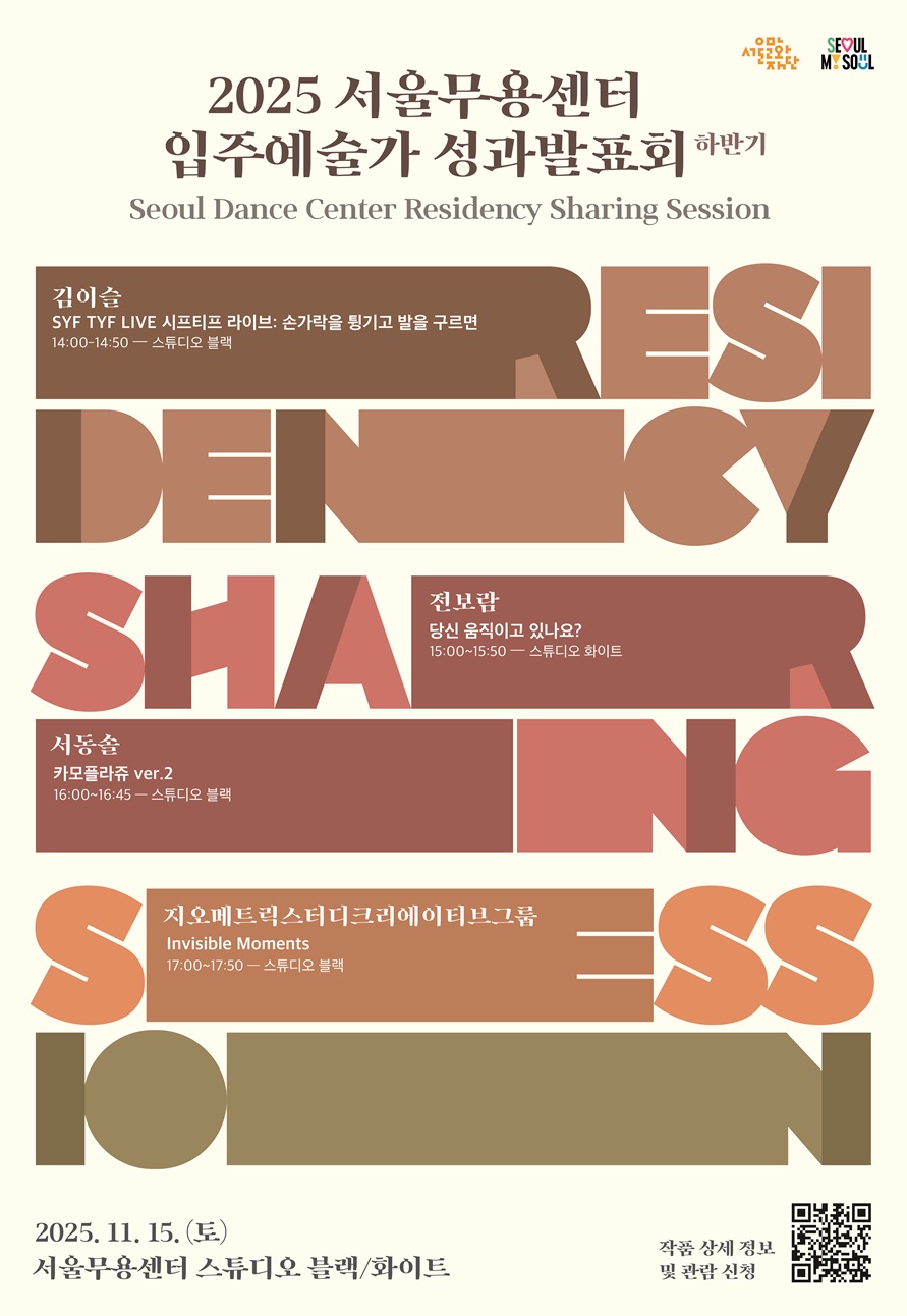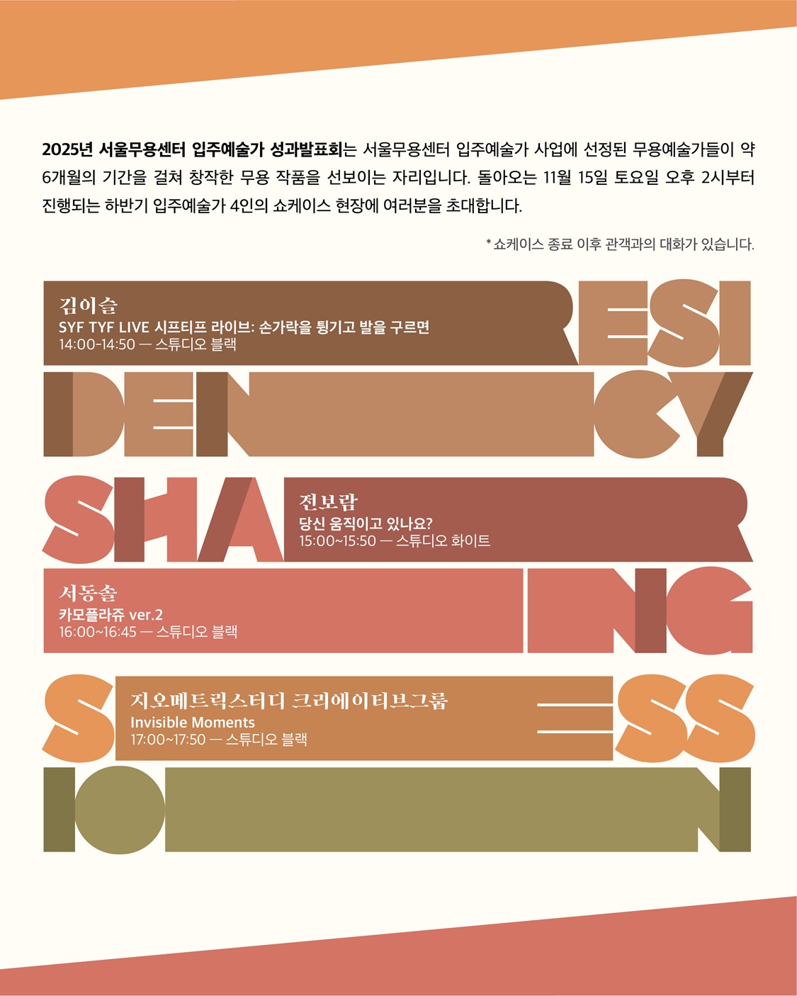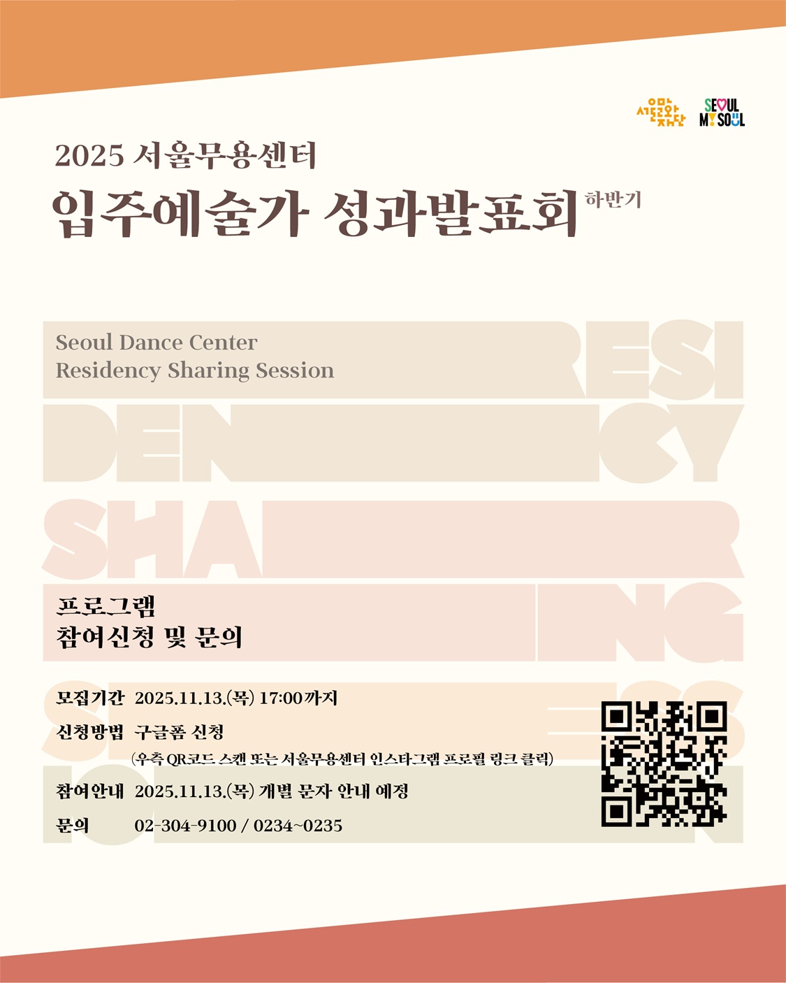 [서울문화재단] 2025년 서울무용센터 입주예술가 하반기 성과발표회 참여자 모집 홍보
