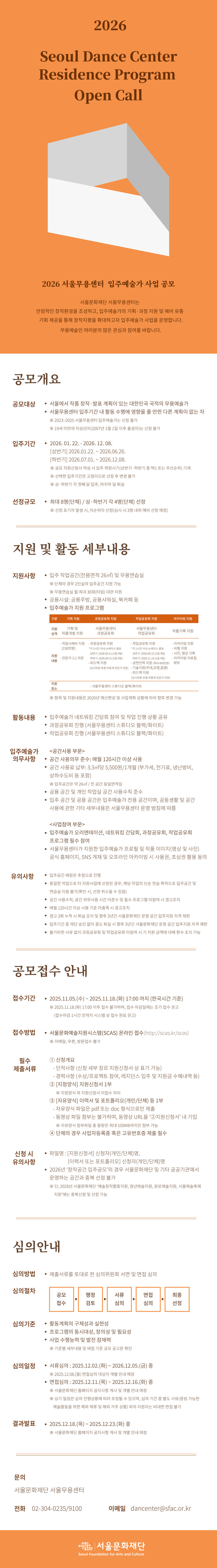 [서울문화재단] 2026년 서울무용센터 입주예술가 사업 공모 홍보