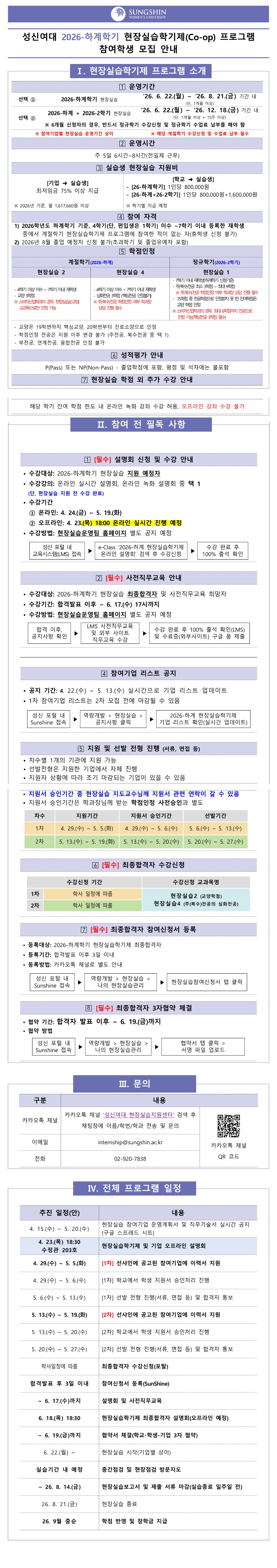 [현장실습운영팀] 2026학년도 하계 현장실습학기제(Co-op) 프로그램 참여학생 모집 안내