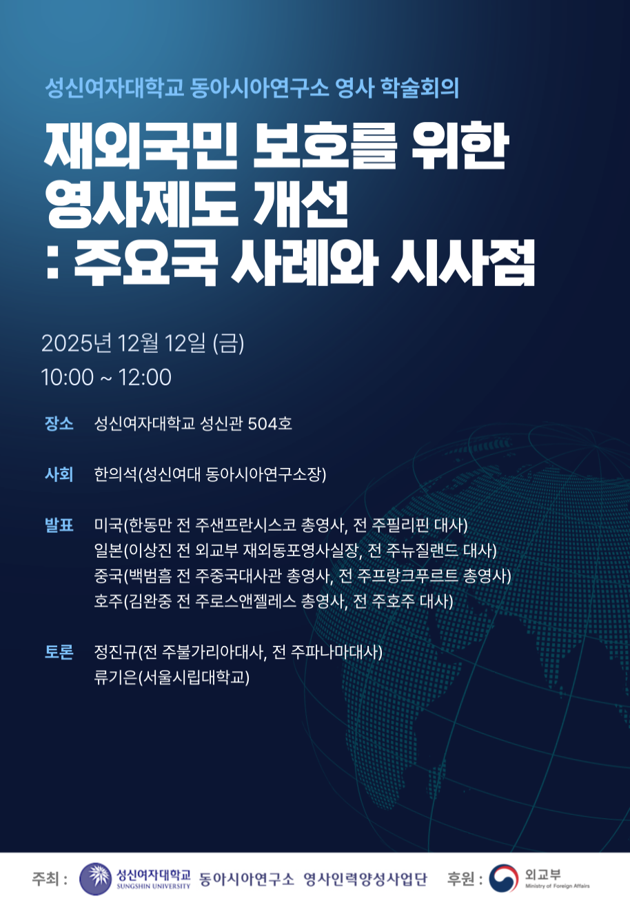 주최: 성신여자대학교 동아시아연구소, 영사인력양성사업단