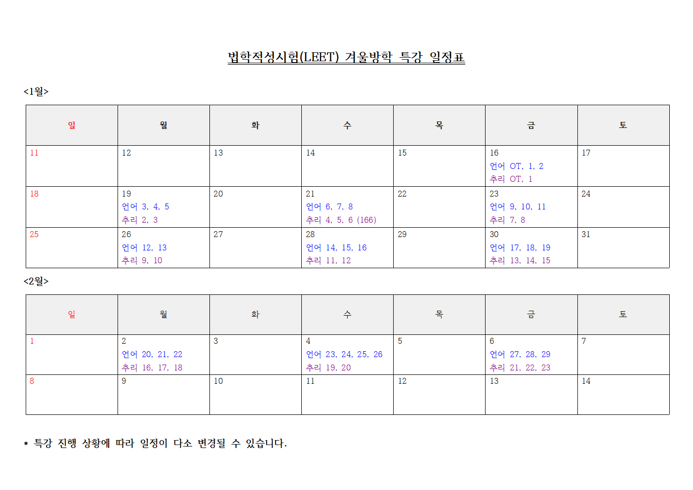 (3) 일정 : 1월 16일(금) ~ 2월 6일(금) / 매주 월, 수, 금