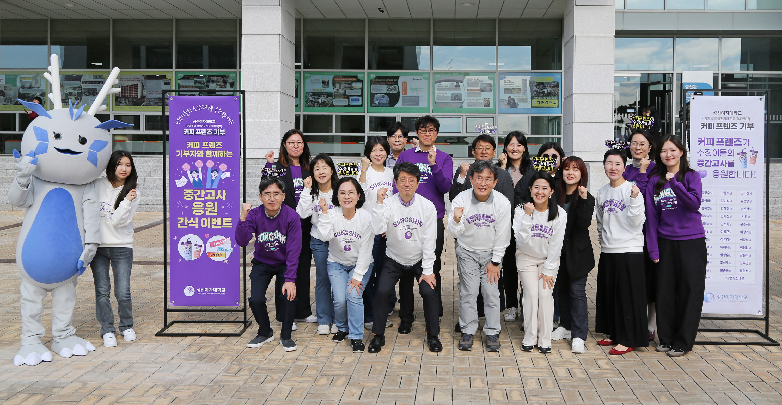 한편, 성신여대 <커피 프렌즈 기부>는 장기 소액 발전기금 모금 캠페인(Ⅱ) 프로그램으로 2025년 6월부터 시작된 모금 캠페인이다. 지금까지 교직원, 동문, 학부모 등이 참여하며 ‘커피 한 잔 가치의 기부’라는 취지 아래 일상 속에서 누구나 손쉽게 참여할 수 있는 나눔 문화를 확산하고 있다. 모금된 기부금의 80%는 대학 발전을 위한 일반발전기금으로, 20%는 매 학기 ‘커피 프렌즈’의 이름으로 재학생 대상 중간고사 응원 음료 제공에 활용된다.