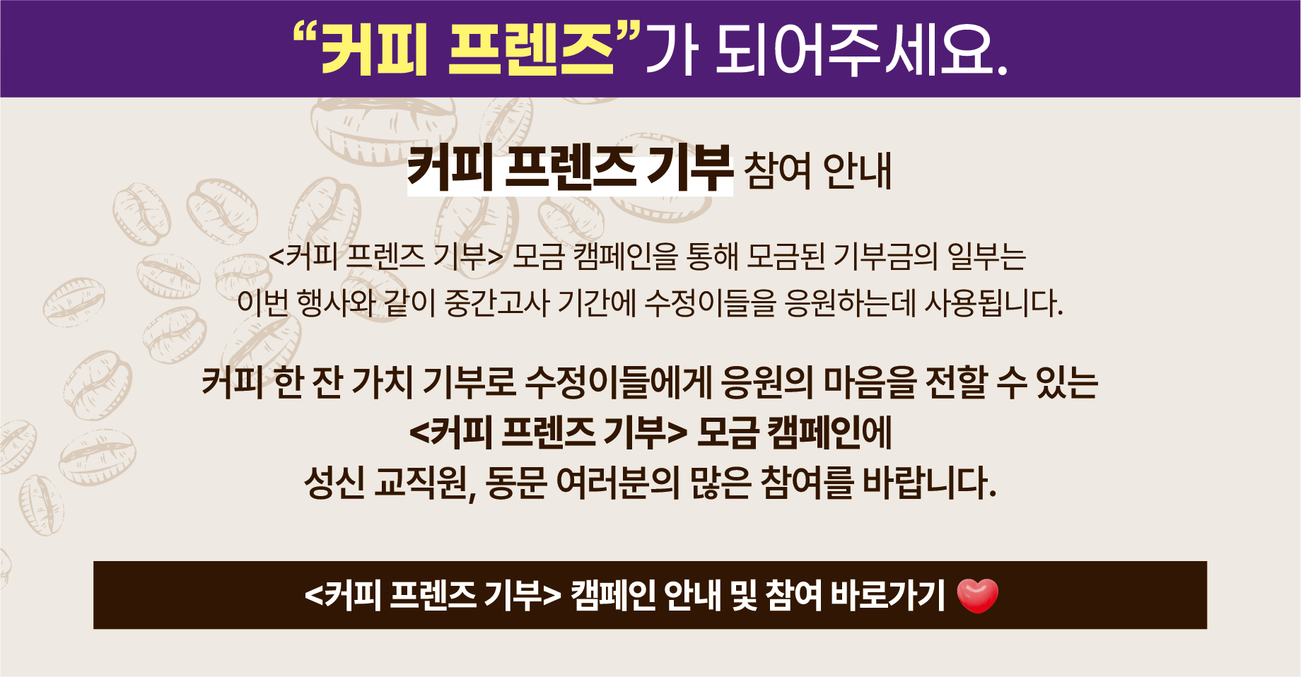커피 프렌즈 기부자와 함께하는 <중간고사 응원 이벤트>는