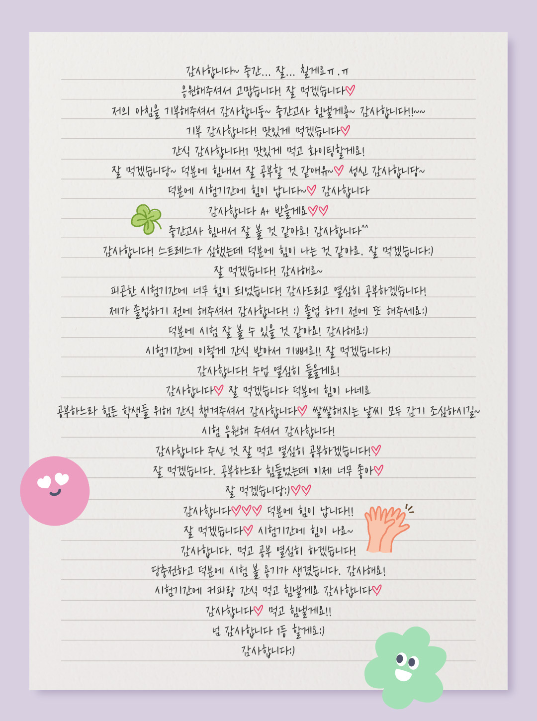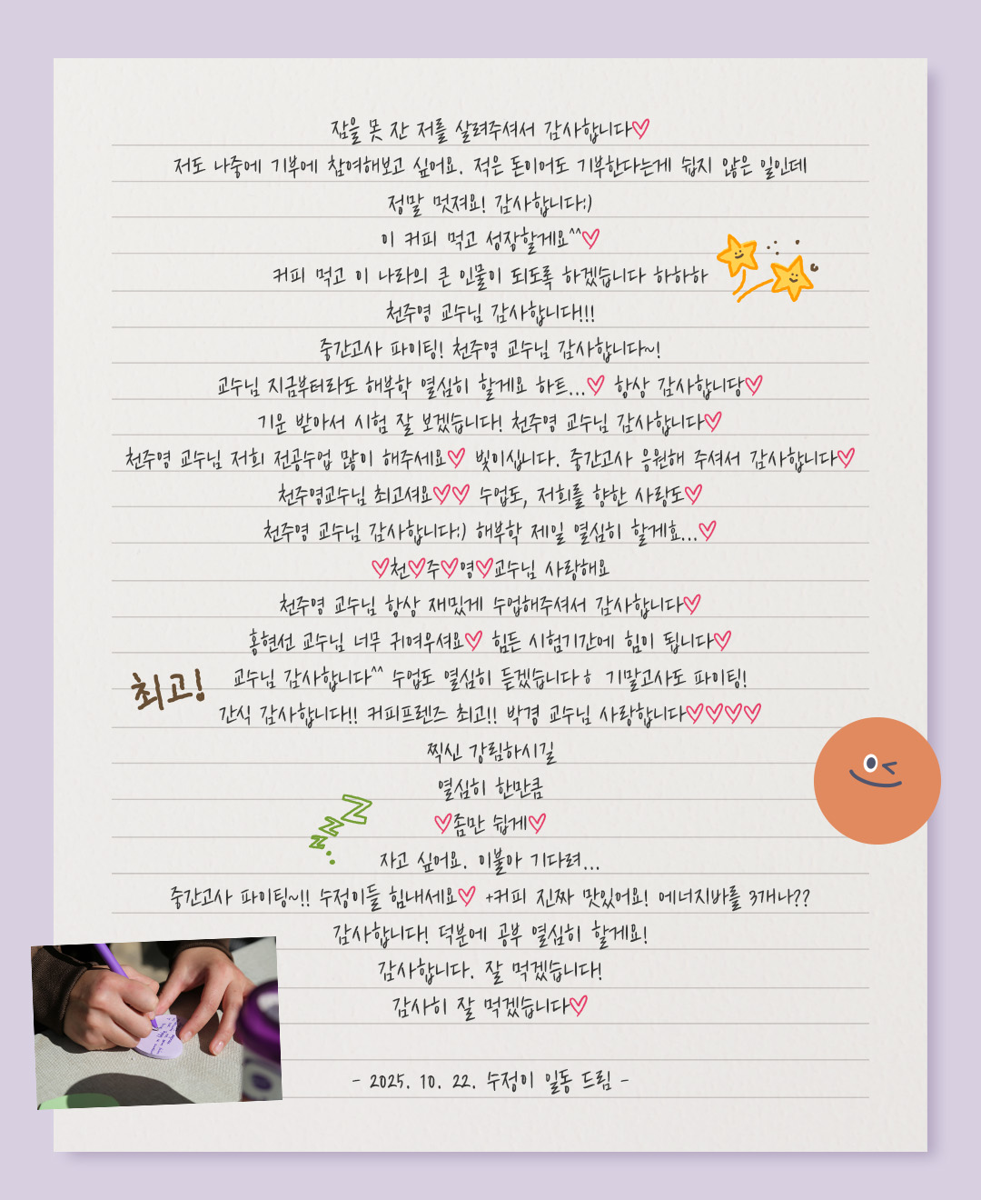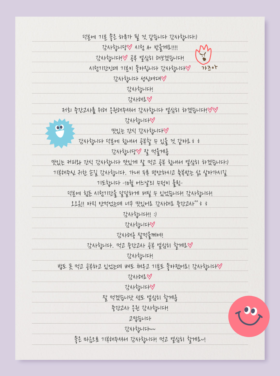<커피 프렌즈> 기부자님께 남긴 수정이들의 감사 메시지를 확인하세요.