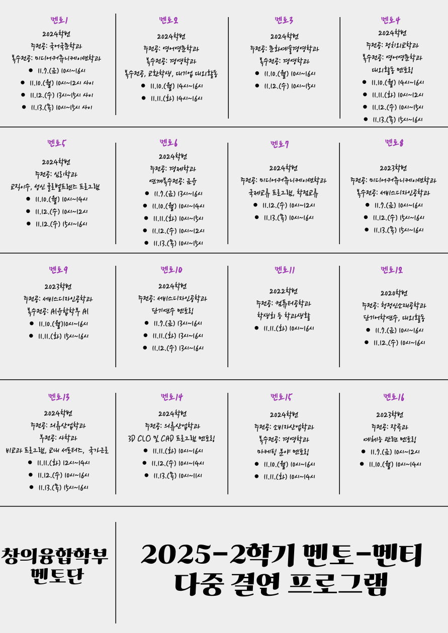 2025-2학기 창의융합학부 멘토-멘티 다중 결연 프로그램