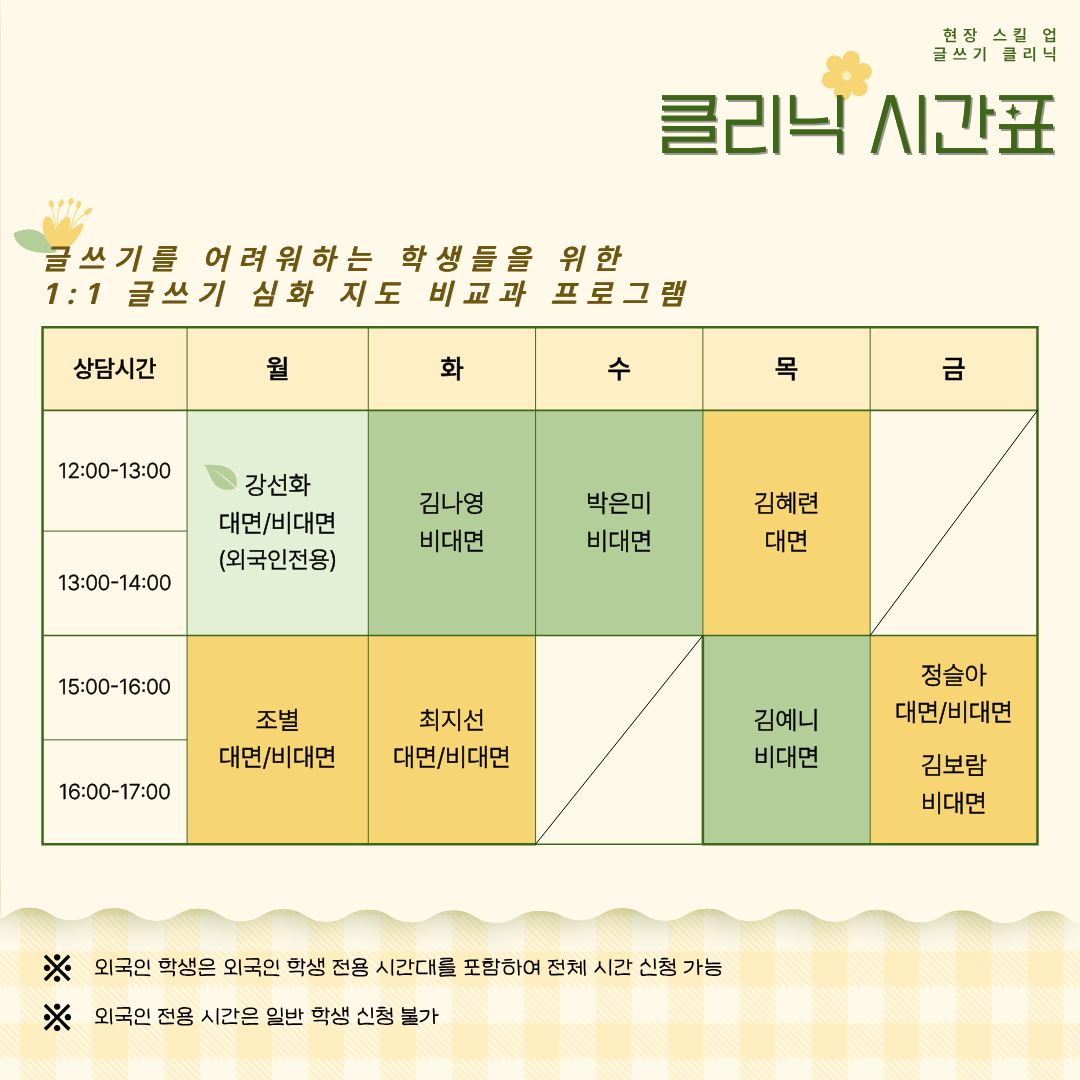 ★ 외국인 학생은 외국인 전용 시간대를 포함하여 전체 시간 신청 가능