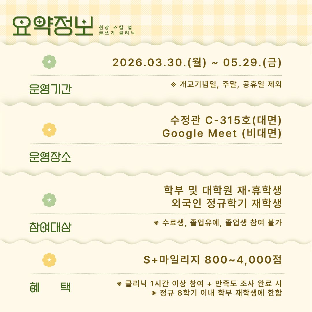 2026학년도 1학기 글쓰기 클리닉이 시작됩니다.
