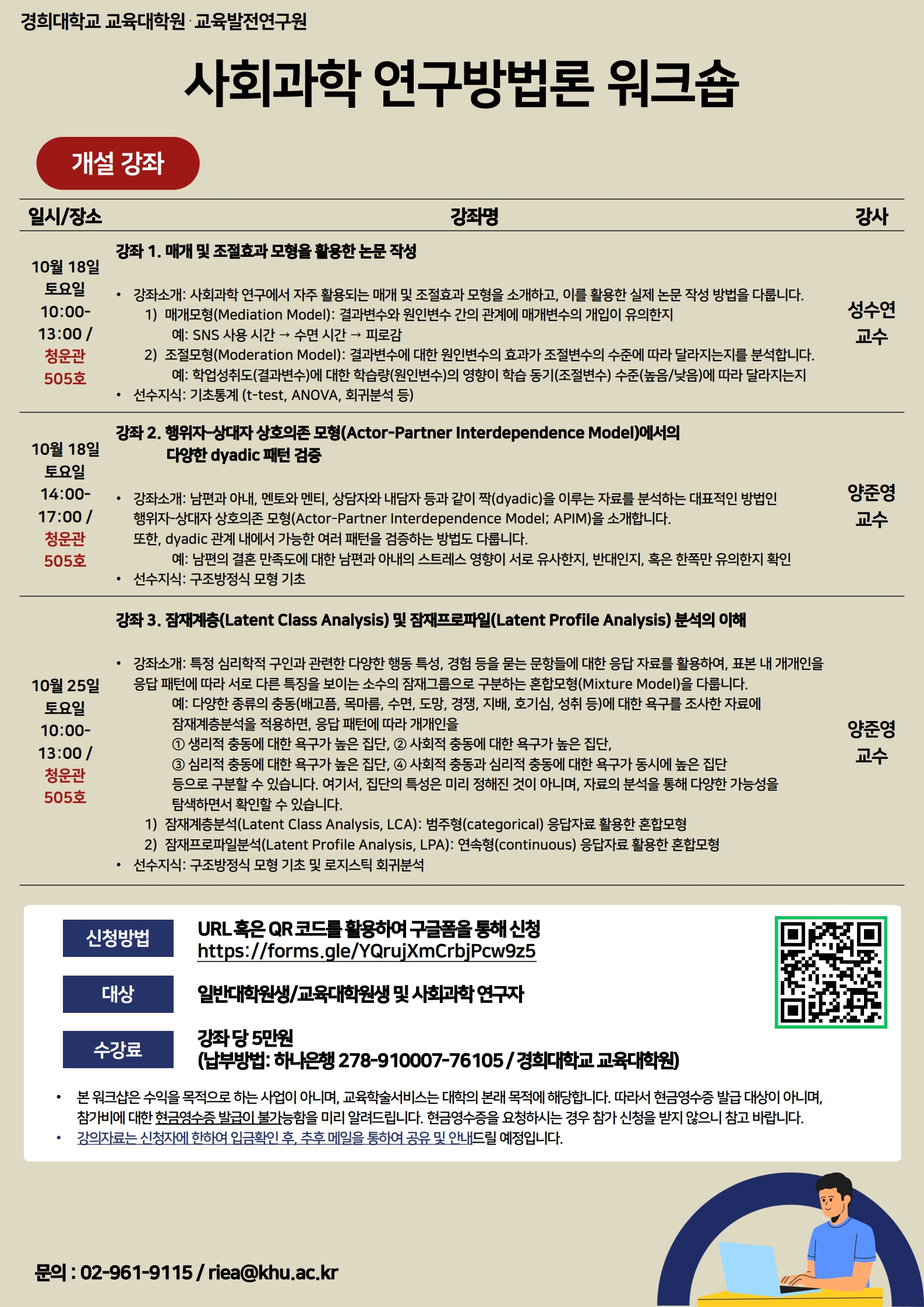 [경희대학교 교육대학원] 사회과학 연구방법론 워크숍 안내