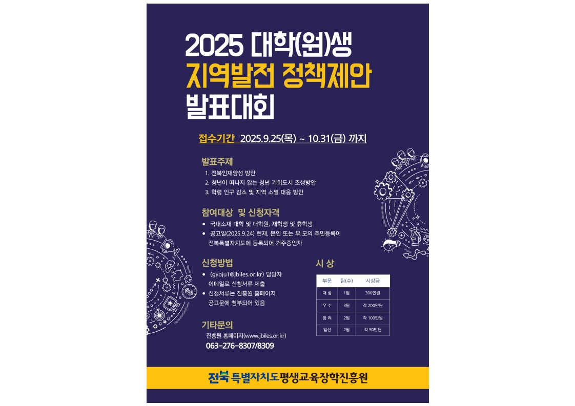 2025년 <대학(원)생 지역발전 정책제안 발표대회> 참가팀 모집