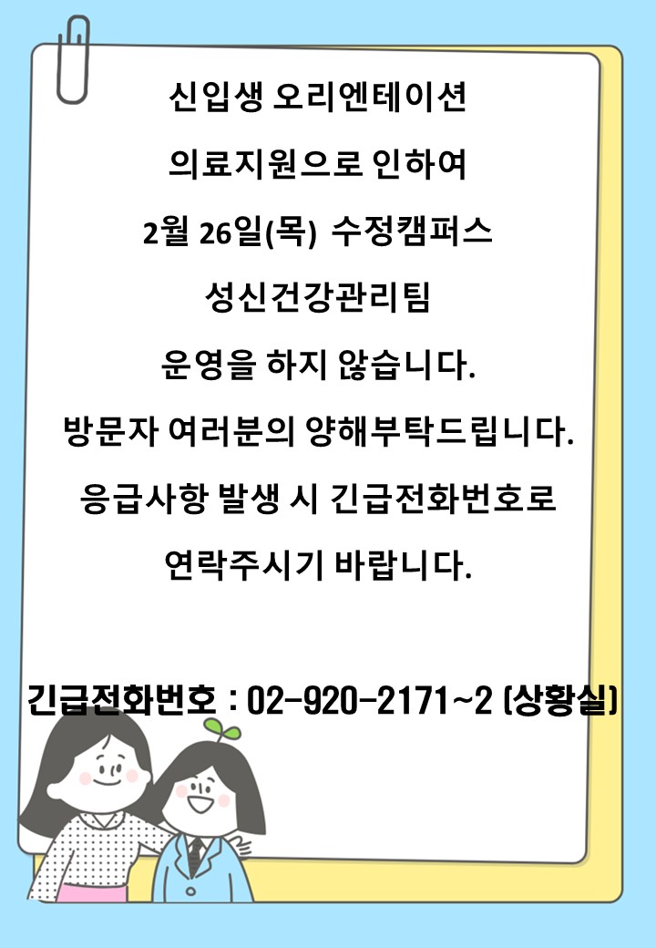 [성신건강관리팀] 2월26일 수정캠퍼스 건강관리팀 운영안내.