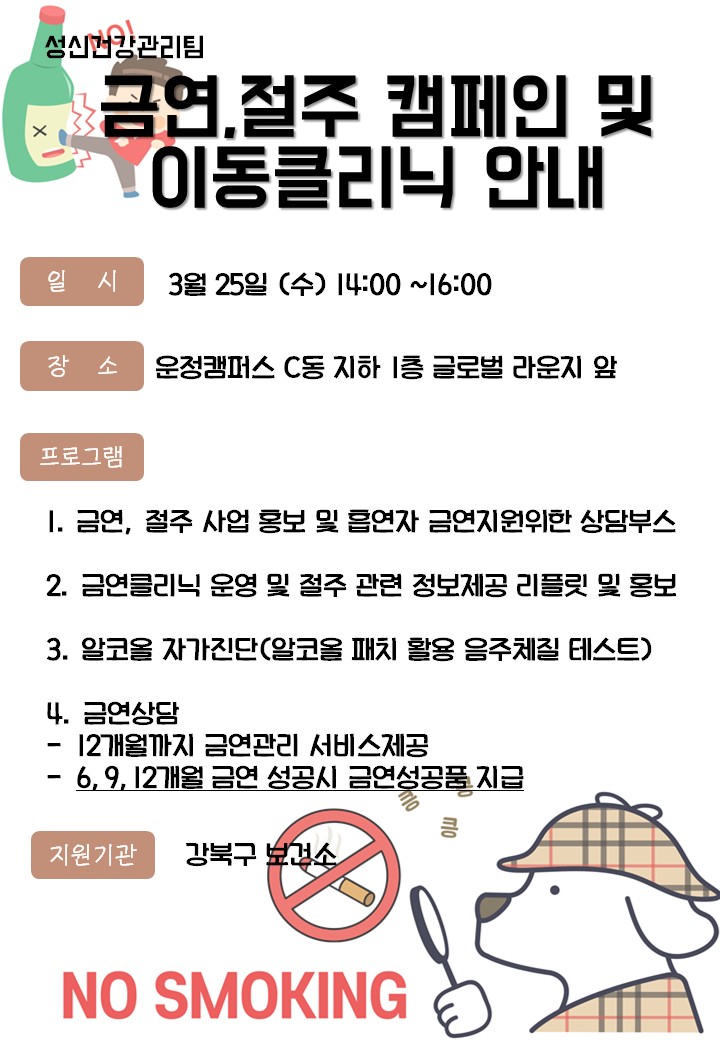 [성신건강관리팀] 금연.절주 캠페인 및 이동클리닉 안내