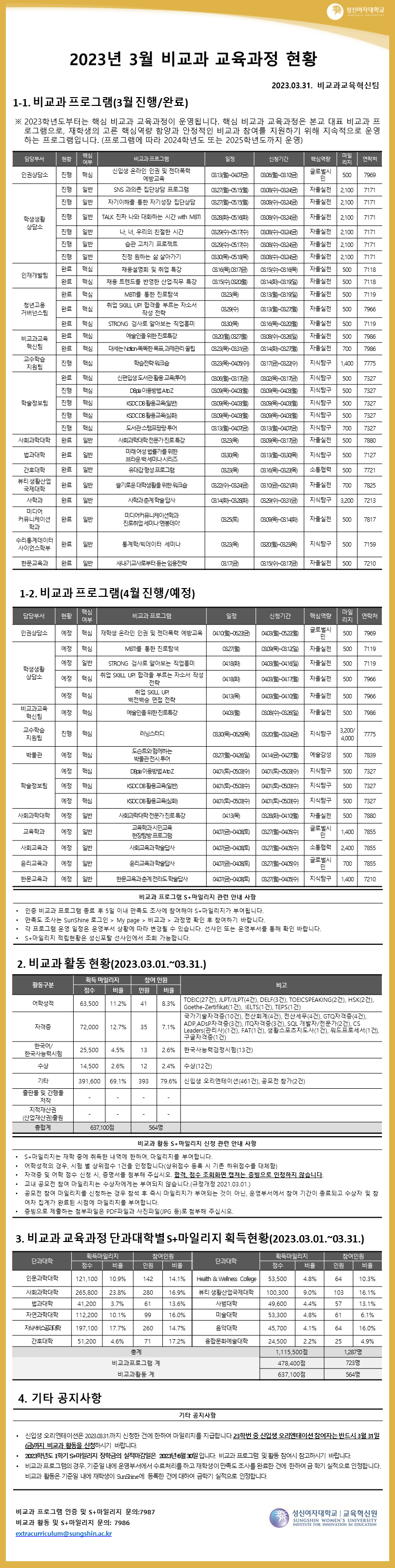 [비교과] 2023년 3월 월간 비교과 교육과정 현황 및 S+마일리지 신청관련 안내