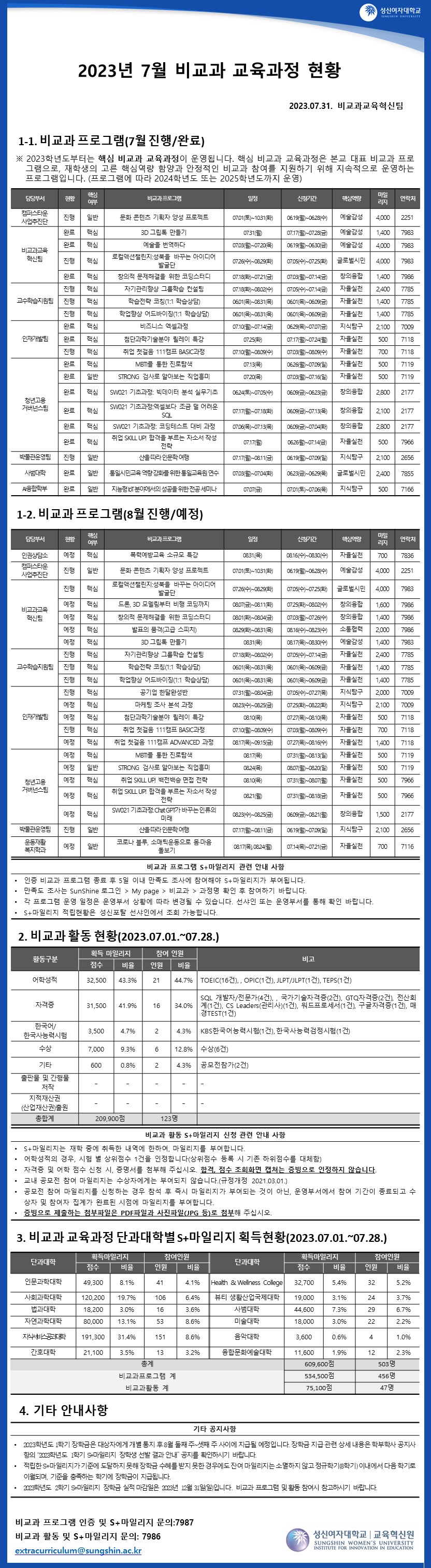 [비교과] 2023년 7월 월간 비교과 교육과정 현황 및 S+마일리지 신청관련 안내